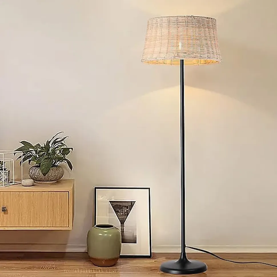 Lampadaire « Serena » – Élégance et Fonctionnalité pour votre MaisonLe lampadaire « Serena » allie un design ingénieux à des matériaux naturels pour illuminer et embellir votre espace. Sa structure présente une ligne cachée dans le mât, qui non seulement ajoute une touche de sophistication, mais cache également les câbles d’alimentation, garantissant un aspect propre et sécurisé.Caractéristiques Principales :Écran en Rotin : Avec un diamètre de 28 cm, son écran en rotin apporte une touche rustique et chaleureuse, créant une atmosphère accueillante dans n’importe quel environnement.Hauteur Imposante : Avec ses 147 cm de hauteur, « Serena » devient un point central qui attire l’attention dans n’importe quelle pièce.Éclairage Personnalisé : Nécessite une ampoule E27, vous permettant de choisir l’éclairage qui correspond le mieux à votre style et à vos besoins.Confort et Sécurité : Équipé d’une prise certifiée et d’un interrupteur au pied, il offre une expérience d’utilisation pratique et sécurisée.Le lampadaire « Serena » est le choix parfait pour ceux qui recherchent une fusion d’élégance et de fonctionnalité dans leur maison.