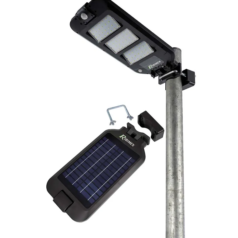 Lampadaire Solaire LEO 1400 lumens RIBIMEXCaractéristiques Techniques- Type: Lampadaire solaire mural ou poteau avec détecteur de mouvement (réf. PRLUMSOLMP1400)- Éclairage: 70 lumens en mode permanent, 1400 lumens en mode détection pendant 30 secondes- Panneaux: 3 lumineux inclinables à 15° pour une orientation optimale- Batterie: Li-ion 3.7V- 3600mAh, autonomie longue durée- Chargement: 10-12 heures via capteurs solaires intégrés- Détection: Mouvements sur 120° jusqu’à 8 mètres de distance- Dimensions: 38 x 20.6 x 3.8 cm, design compact et efficace- Installation: Fixation murale ou sur poteau, polyvalence d’utilisationLampadaire solaire LEO mural ou poteau avec détecteur,PRLUMSOLMP1400,RIBIMEXFixation murale ou sur poteau- 3 panneaux lumineux inclinables de 15°- Batterie Li-on 3.7V-3600mAh- Chargement ± 10-12 h par capteurs solaires- Dimensions ± 38 x 20.6 x 3.8 cm- 70 lumen en mode permanent- 1400 lumen en mode détection de mouvement pendant 30 secondes- Détection de mouvements sur 120° jusqu’à 8m. Type Lampadaire solaire Fixation Murale ou poteau Panneaux 3 lumineux inclinables 15° Batterie Li-on 3.7V-3600mAh Chargement ± 10-12 h / capteurs solaires Dimensions ± 38 x 20.6 x 3.8 cm Intensité 70 lumens mode permanent / 1400 lumen mode détection Détection mouvements sur 120° jusqu’à 8m Garantie 2 ans Référence fabricant PRLUMSOLMP1400 Marque RIBIMEX