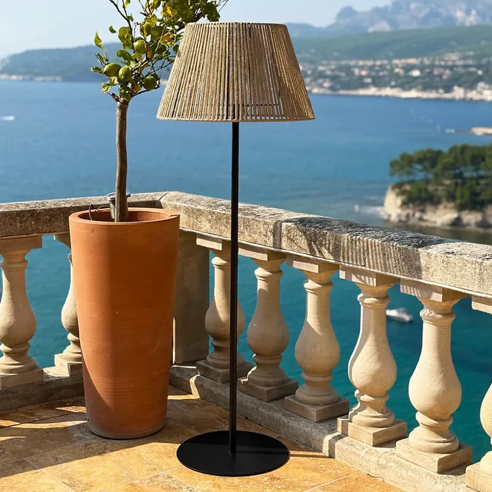 Le lampadaire solaire Tall Raffy Solar se distingue par son design bi matière élégant, mariant un abat-jour en corde naturelle à un pied en métal moderne et stable. Ce luminaire de caractère est idéal pour créer un point focal chaleureux sur votre terrasse ou dans votre jardin. Livré avec le module LED SUNNY ROUND et sa télécommande, il diffuse un éclairage blanc chaud ajustable sur trois niveaux d’intensité, atteignant 300 lumens. Sa batterie haute performance assure une autonomie remarquable allant jusqu’à 16 heures. Grâce à sa recharge hybride, il se recharge via l’énergie solaire ou par câble USB, garantissant une lumière fiable même par temps couvert. Certifié IP65 et résistant aux UV, ce modèle affronte sereinement les intempéries tout en proposant un allumage automatique pratique à la tombée de la nuit. Esthétique et robuste, le Tall Raffy Solar allie parfaitement authenticité et technologie solaire pour sublimer vos espaces extérieurs en toute liberté.