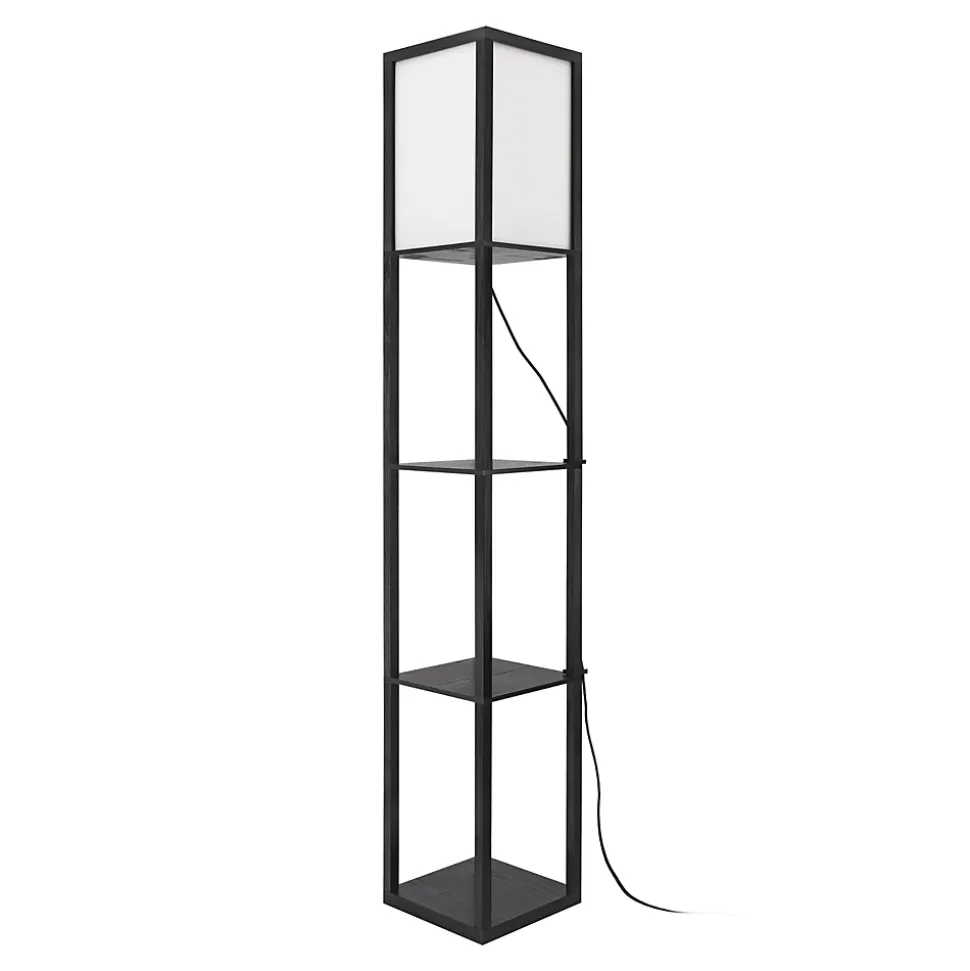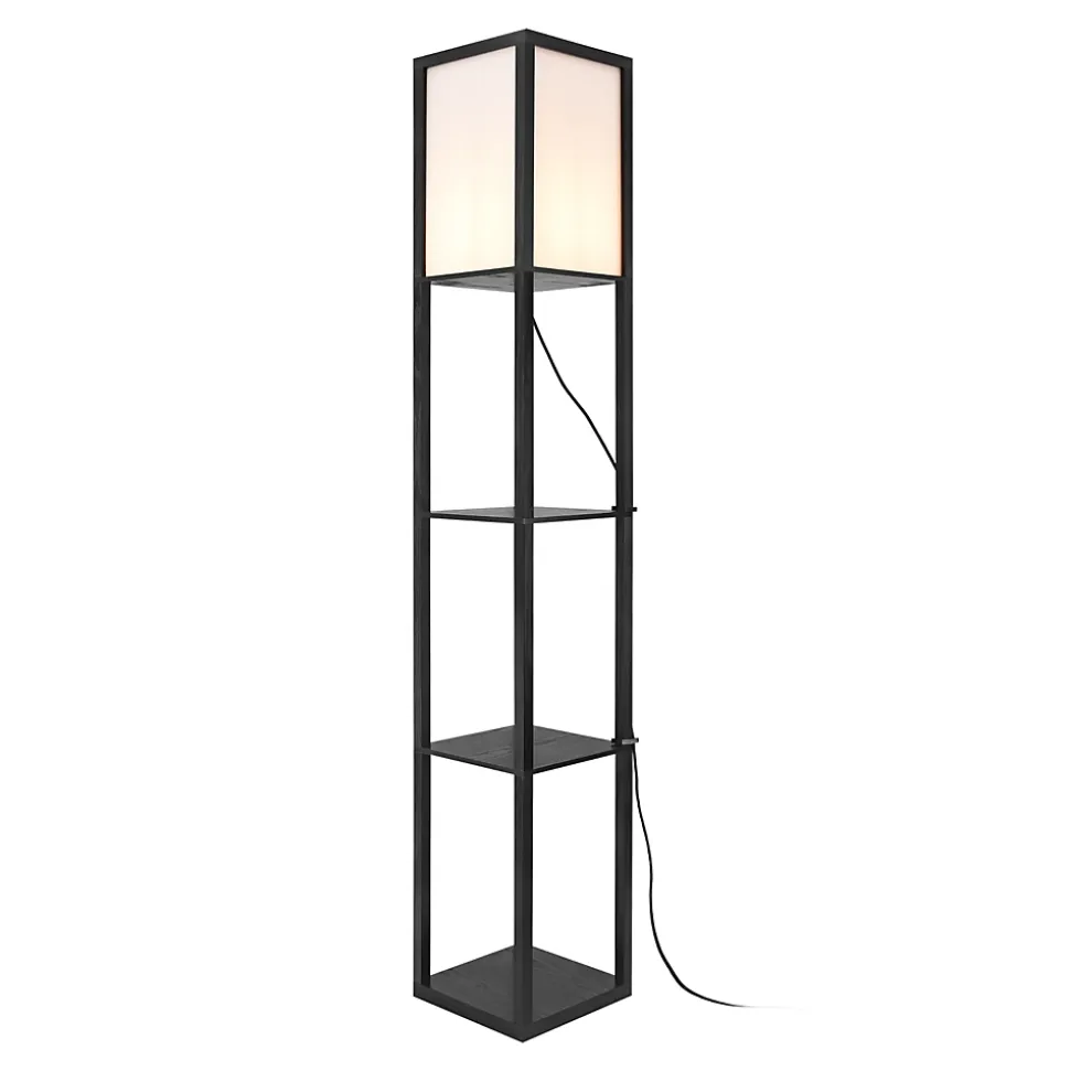 LampadaireCette lampe sur pied chic et moderne sera l’ornement de la pièce en s’adaptant à la décoration de la maison. A part l’éclairage, ce lampadaire offre 3 surfaces de rangement gâce à l’étagère intégrée.Description :- luminaire de design original- avec une étagère à 3 niveaux intégrée- conçu pour un éclairage intérieur- doté d’une douilleCaractéristiques :- douille : 1 x E27, max. 20W (sans ampoule)- alimentation : 230V, 50Hz- type d’interrupteur : sur câbleMatière :- structure : bois- abat-jour : plastiqueDimensions :- totales (hauteur x largeur x profondeur) : 160 x 26 x 26 cm- distance entre les niveaux d’étagère : 39 cm- longueur du câble : 180 cmCouleur :- structure : noir- abat-jour : blancContenu de la livraison :1 x lampadaire [l’ampoule ne fait pas partie de l’offre]Produit de la marque :[lux.pro]