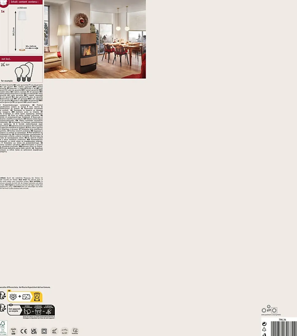 Un mélange de matériaux moderne associant du bois véritable et du tissu avec du blanc intemporel : la série Neordic Stellan incarne l’éclairage confortable à la manière nordique. Avec des lampes à poser et des lampadaires assortis, poser des touches de lumière dans vos pièces à vivre devient un jeu d’enfant. Vous êtes plutôt pour le changement ? Pour des combinaisons idéales, n’hésitez pas non plus à associer les luminaires des différentes séries Neordic. Selon l’ampoule utilisée, la lampe est dimmable.