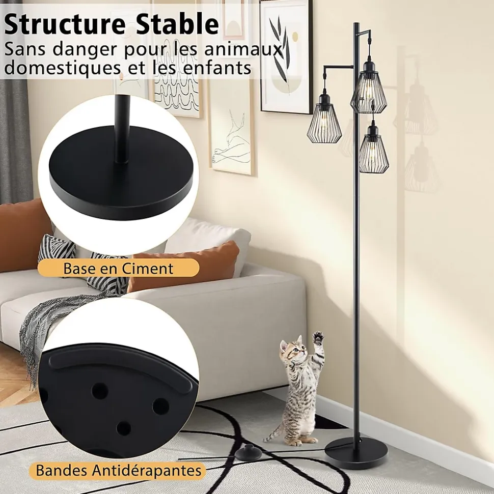 Éclairage à 360 ° : Les 3 lampes du lampadaire sont placées verticalement sur la lampe d’arbre, ce qui peut fournir une gamme complète de lumière. La conception multiple offre une bonne solution contre l’éblouissement des lampes traditionnelles et vous met à l’aise. Sous la lumière de ce grand lampadaire, vous pourrez profiter pleinement de l’atmosphère confortable.