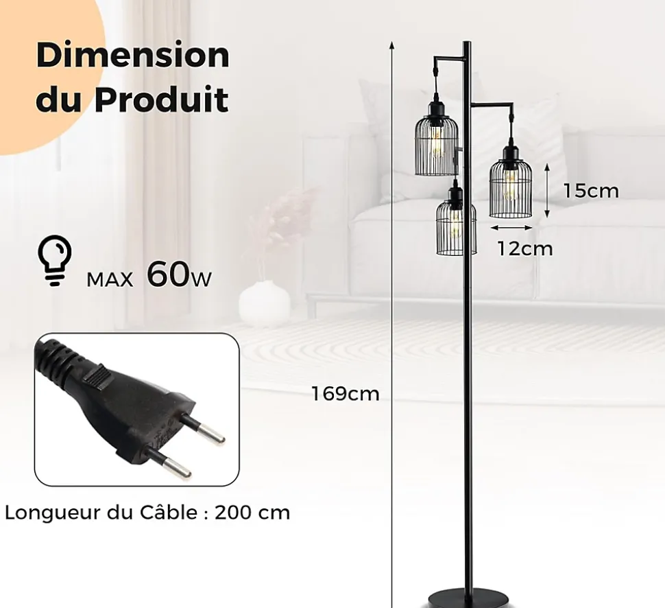 - Lampe Elégante et Peu Encombrante : Dotée d’abat-jour en cage métallique, la grande lampe sur pied complète une large gamme de styles de décoration intérieure. De plus, la conception d’angle peu encombrante en fait un complément parfait à votre salon, chambre ou bureau.