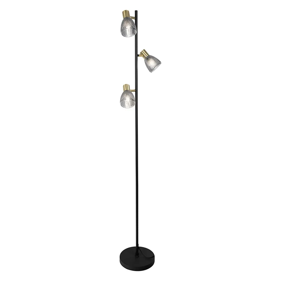 Ce lampadaire de la collection LINDITA est non seulement fonctionnel, mais aussi un véritable atout pour tout aménagement intérieur. Un lampadaire est un bel ajout à votre décoration intérieure et crée une atmosphère chaleureuse. Il sert à la fois de lampe de lecture pratique et d’accent raffiné dans votre salon, enrichissant votre intérieur de multiples façons. Le look rétro de cette lampe est habilement souligné par son design asymétrique. Parfaite pour tous ceux qui aiment les objets délicats et élégants ! La lampe noire est fabriquée en métal et en verre et attire tous les regards dans n’importe quelle pièce. Le pied mat s’harmonise avec l’abat-jour fumé. Le lampadaire mesure 23 cm de long, 23 cm de large/profondeur et 154 cm de haut.Le luminaire a donc un diamètre de 23 cm. Le lampadaire est équipé d’un interrupteur à cordon et d’une fiche plate européenne. Avec une longueur de 180 cm pour le câble d’alimentation noir, vous disposez d’une grande liberté pour choisir l’emplacement du luminaire. Équipé de 3 douilles E14, vous pouvez équiper ce lampadaire avec les ampoules de votre choix pour éclairer n’importe quelle pièce. Vous pouvez changer les ampoules vous-même, ce qui est non seulement pratique, mais aussi économique. Ce luminaire correspond à la classe 2. Pour le fonctionnement sur secteur de cet appareil, une tension secteur de 220-240 V ~ 50 Hz est nécessaire. Le luminaire a une puissance totale admissible de 120 watts. Apportez une touche chaleureuse et agréable à vos pièces avec notre lampadaire de haute qualité et découvrez l’éclairage dans sa plus belle forme.