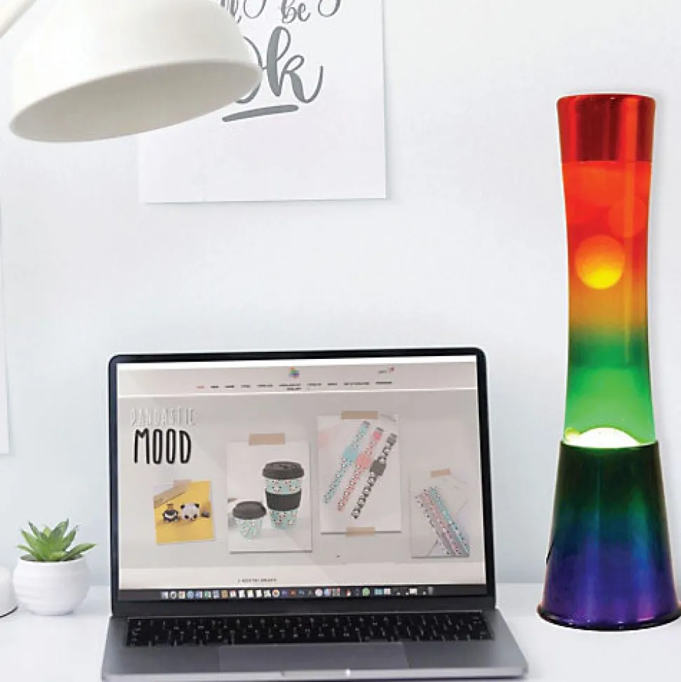 Ping vous propose :La lampe à lave RAINBOW où la cire chauffée par la chaleur d’une ampoule se forme et se déforme à l’infini.1 à 2 heures sont nécessaires pour que la cire blanche incluse dans le liquide bleu, activée par la chaleur dégagée par l’ampoule fournie, commence à vus émerveiller d’un spectacle unique et hypnotique.Le socle et le chapeau sont en aluminium brossé aux couleurs de l’arc-en-ciel !Au milieu, un élégant tube en verre avec à l’intérieur un liquide coloré imitant de la lave en fusion ! Les plus du produit :- Cadeau orignal et coloré à loisir !- Objet de décoration élégant- Ampoule remplaçable: E14, 25W – R39<