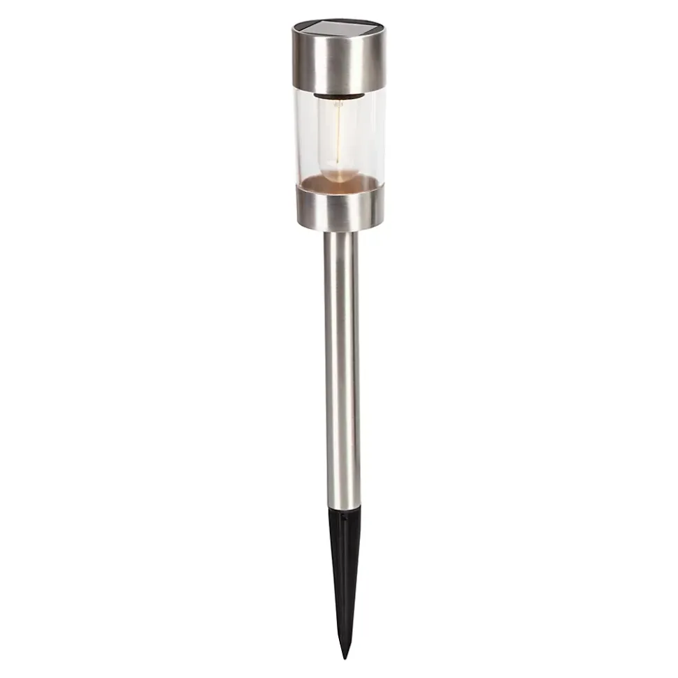 Lampe à piquer d’extérieur solaire LED intégrée inox argenté IP44 0.5W blanc chaud
