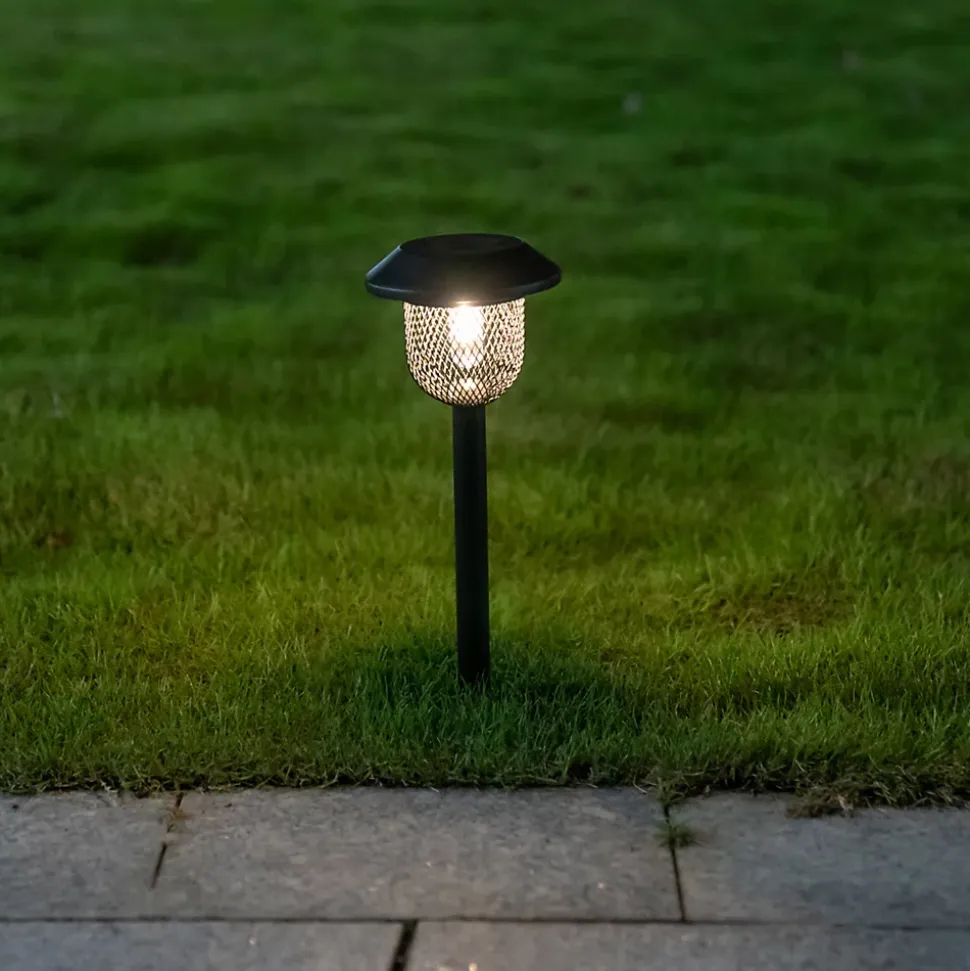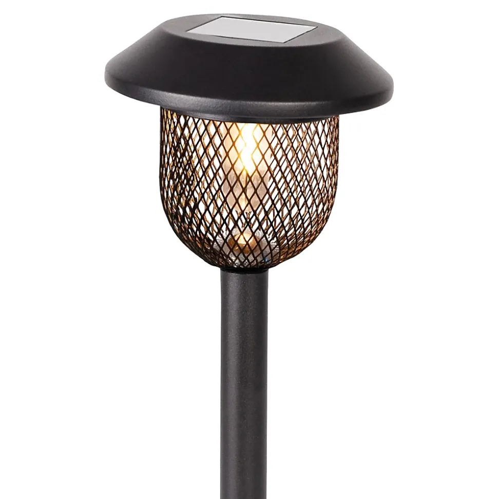 Lampe à piquer d’extérieur solaire LED intégrée métal noir IP44 0.2W blanc chaud