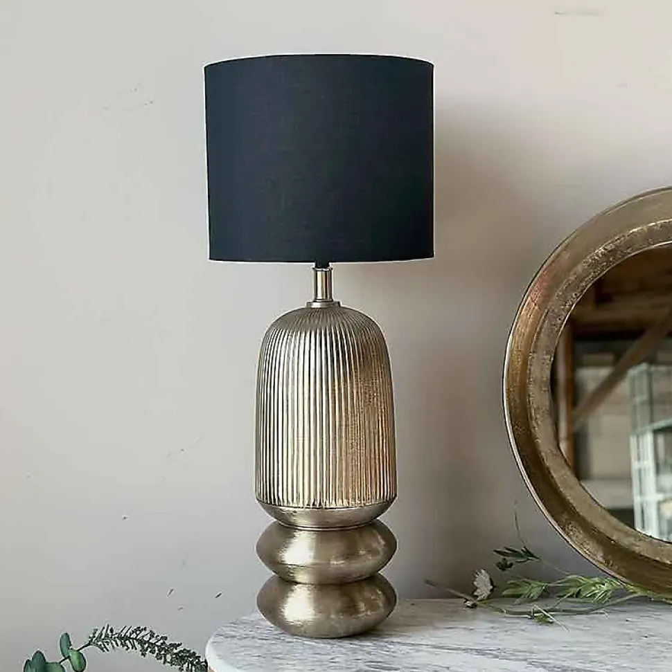 Lampe élégante et originale ! Ajoutez une touche de sophistication contemporaine à votre espace avec notre belle lampe Aurora en aluminium. Son pied rayé doré et son abat-jour noir de 30 cm de diamètre créent une esthétique chic et élégante.Avec une hauteur de 73 cm, cette lampe offre un éclairage subtil et stylé pour tout environnement !Dimensions : 30 x 30 x 73 cmLA GRANDE PRAIRIE Redéfinissez le style de votre intérieur avec notre sublime lampe Aurora en aluminium. Son design épuré et contemporain apporte une élégance raffinée à n’importe quelle pièce. Le pied rayé doré offre un attrait visuel saisissant, ajoutant une touche de luxe à votre décor. Combiné à l’abat-jour noir de 30 cm de diamètre, cette lampe crée un contraste sophistiqué et diffuse une lumière douce et apaisante !Elle est idéale pour éclairer vos espaces de vie, que ce soit dans le salon, la chambre à coucher ou le bureau. Transformez votre intérieur en un sanctuaire de style et de confort avec la lampe Aurora, une fusion parfaite de design contemporain et de fonctionnalité élégante.