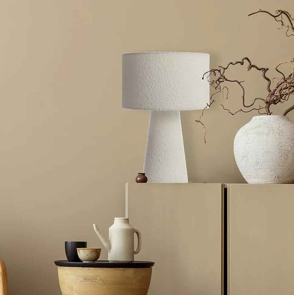 La lampe Badi I allie modernité et douceur dans un design élégant et épuré. Dotée d’un abat-jour en tissu bouclette, elle séduit par sa texture chaleureuse et enveloppante, idéale pour créer une ambiance cosy et conviviale dans tous les espaces de vie. Son tissu bouclette, apprécié pour son aspect texturé et son toucher moelleux, confère à la lampe Badi un charme à la fois contemporain et réconfortant. Avec sa teinte neutre, elle s’intègre harmonieusement dans divers styles d’intérieur, que ce soit pour sublimer un salon, une chambre ou un bureau. Conçue pour diffuser une lumière douce et apaisante, elle transforme vos moments de détente, de lecture ou de partage en instants encore plus agréables. À la fois fonctionnelle et esthétique, elle éclaire subtilement votre intérieur tout en insufflant une atmosphère accueillante et relaxante.