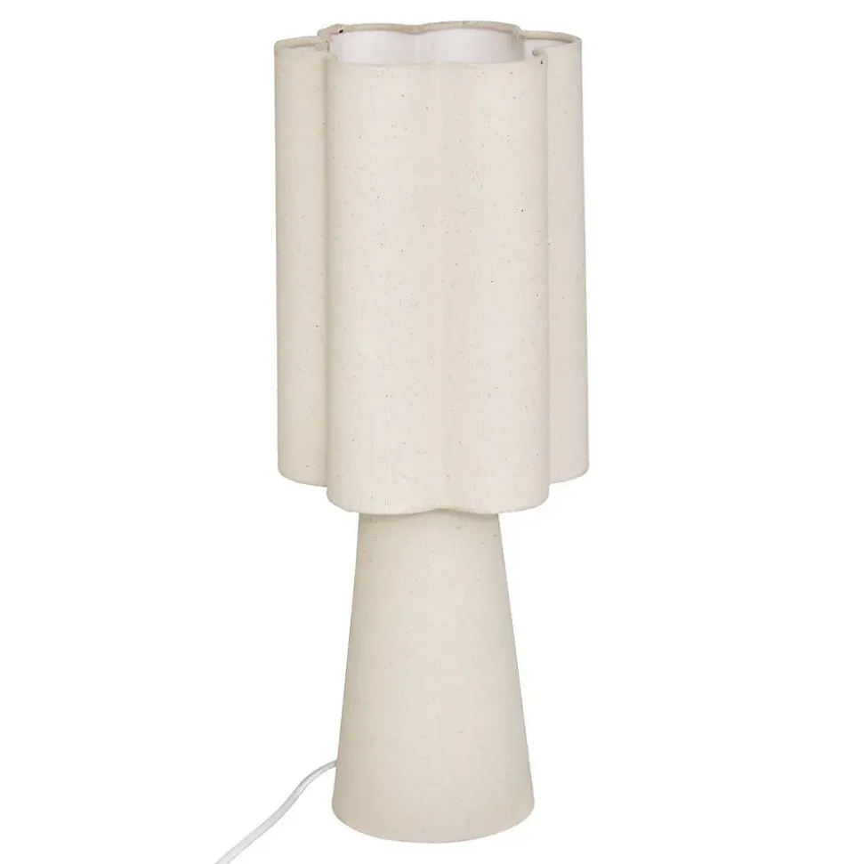 Ajoutez une touche de poésie à votre éclairage grâce à la lampe à poser Blanca signée Atmosphera, créateur d’intérieur. Son design délicat, évoquant une fleur, diffuse une lumière douce, idéale pour créer une ambiance romantique. Avec son abat-jour aux lignes ondulées et sa base conique assortie, la lampe Blanca est un véritable objet décoratif. Sa teinte neutre lui permet de s’intégrer harmonieusement dans votre intérieur, que ce soit sur une table de chevet pour une lumière d’appoint ou sur un buffet dans le salon pour une atmosphère chaleureuse. Description Structure en acier Abat-jour et base recouverts de tissu 100% polyester Câble d’alimentation sur secteur avec interrupteur Type de douille : E27 Puissance maximale : 25W Ampoule non fournie Dimensions Dimensions totales : L 18 x l 18 x H 44 cm Abat-jour : L 18 x l 18 x H 24 cm Base : L 12 x l 12 x H 21 cm Longueur du câble : 150 cm Entretien Dépoussiérer régulièrement à l’aide d’un chiffon doux. Livraison Ce produit est à monter soi-même (temps de montage estimé : 1 minute). Notice fournie. Dimensions et poids du colis 1 colis L 38,6 x H 37 x P 28,3 cm. 2,2 kg