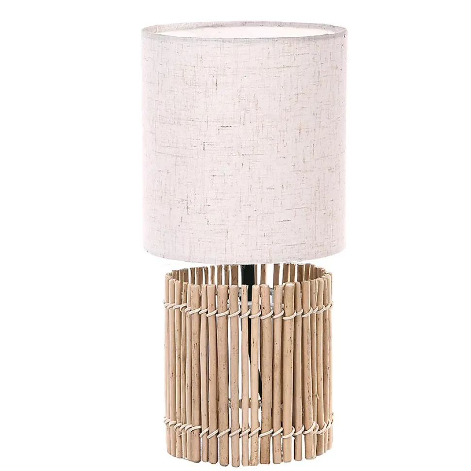 Lampe à poser Bocage effet bois, abat-jour tissu écru Ø15 x H.31cm Seynave