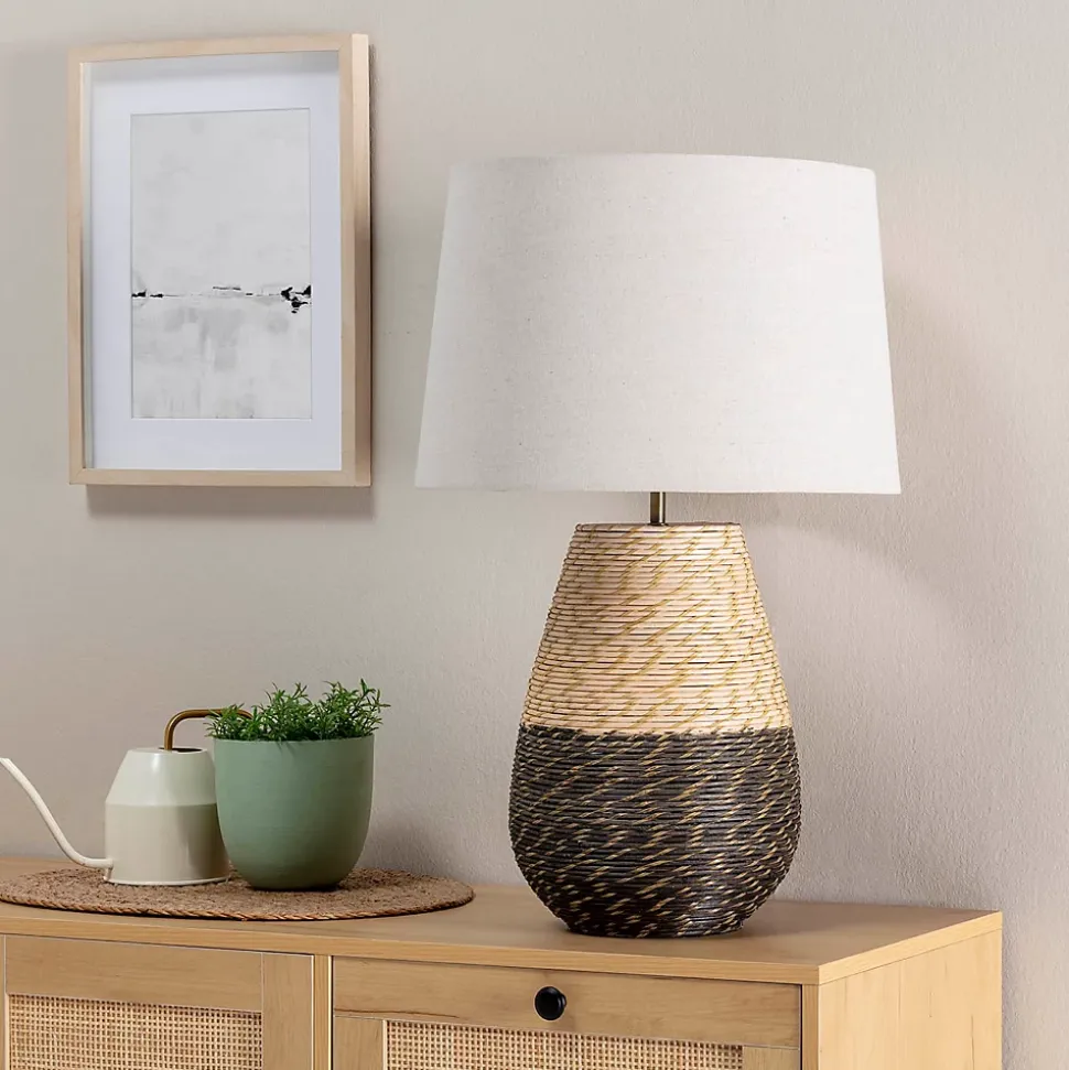 LAMPE DE TABLE EN ROTIN BOTANPrincipales caractéristiques de la lampe:· Cette lampe de table est fabriquée à la main avec du rotin naturel. Les lampes en fibres végétales sont une tendance dans la décoration intérieure, car elles sont très belles et recréent un style naturel et chaleureux qui s’adapte à n’importe quel environnement.· Le tissage élaboré crée un effet visuel très attrayant. Gardez à l’esprit que comme il est fait à la main, il est possible que chaque pièce soit unique et présente quelques imperfections, mais ces détails font partie de son charme naturel.· La composition avec ce tressage stratégique rend ces lampes résistantes, stables et, en même temps, élastiques.· Elles sont idéales pour une décoration nordique, un courant esthétique qui prône des matériaux naturels qui apportent de la chaleur à l’environnement.· Botan est une lampe de table qui donnera un aspect sensationnel à n’importe quelle pièce. Traditionnellement, ces types d’accessoires étaient vus dans les pays asiatiques d’où provenait ce matériau. Cependant, il est maintenant courant de concevoir ces lampes n’importe où et de conserver leur authenticité.· AMPOULE NON INCLUSE· Facile à assembler: le produit comprend un manuel d’instructions très facile à suivre.Dimensions de la lampe de table Botan:· Hauteur: 63 cm· Diamètre: 40,5 cm· Poids: 1,4 kg