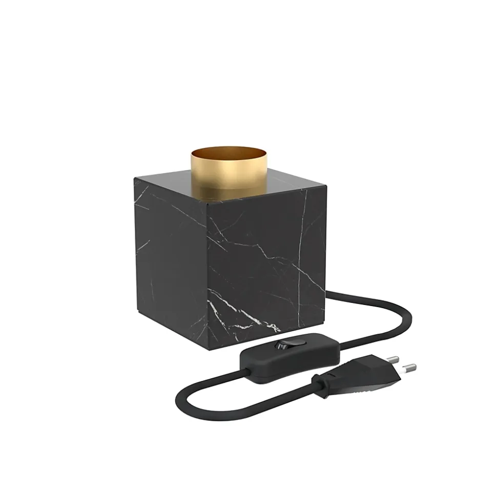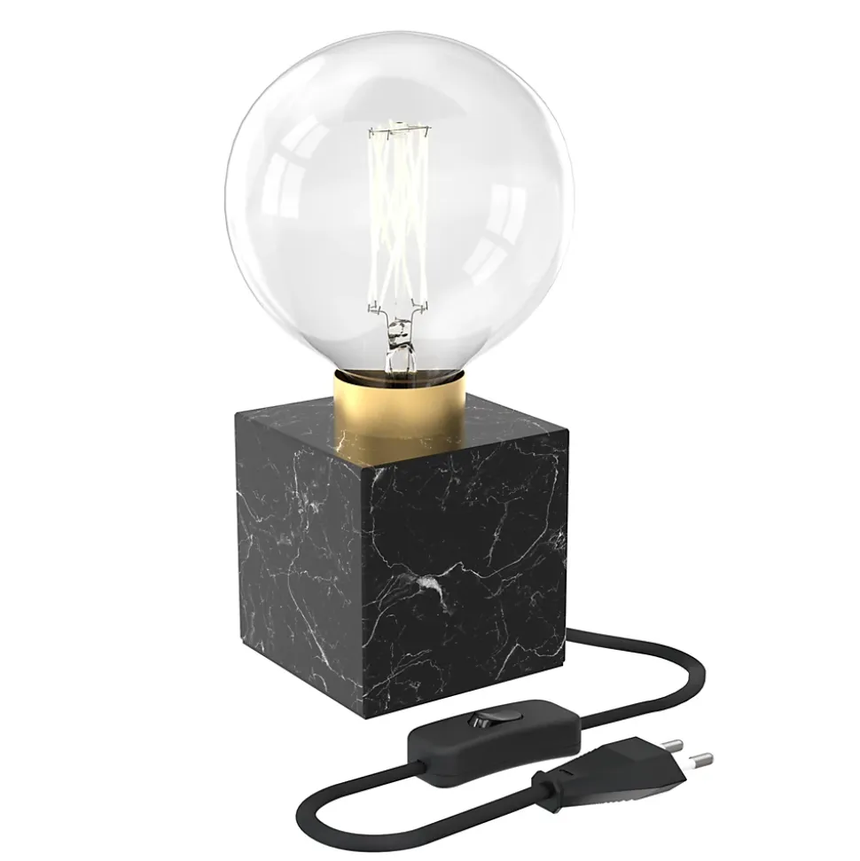 Lampe à poser carré métal effet marbré noir E27 l.9 x H.9cm Calex