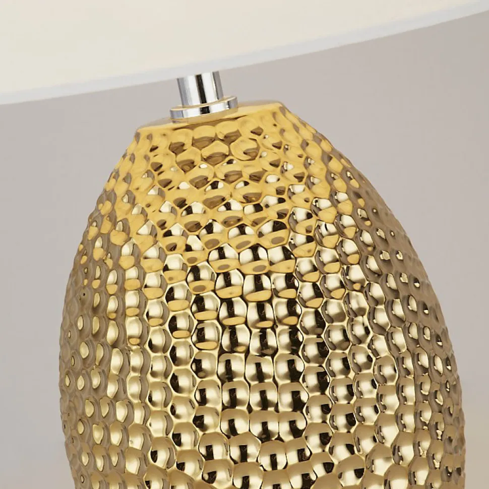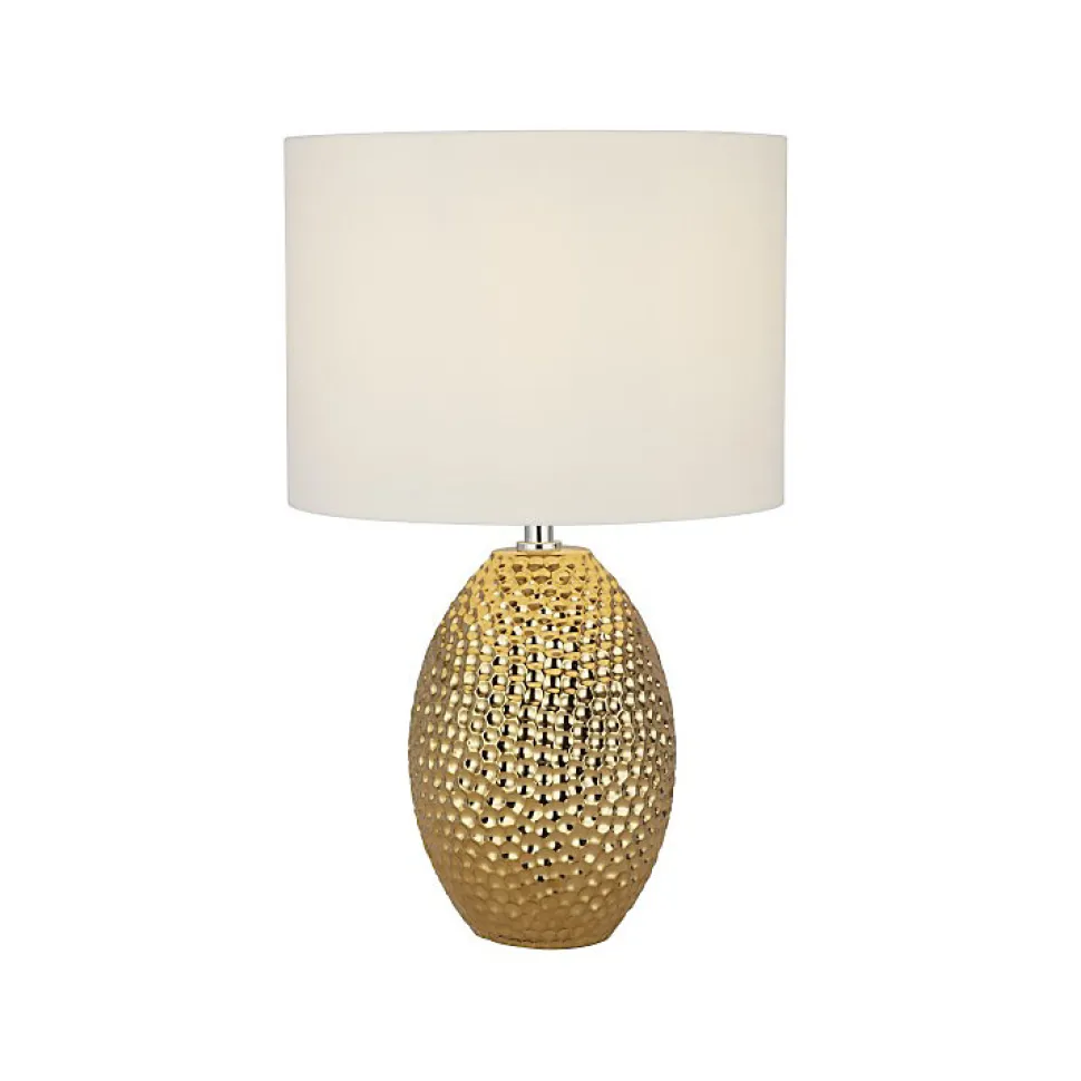 Lampe à poser Céramique perlé doré, Abatjour tissu Crème E27 max 60w Haut 45cm Diam 48cm NADINE 1LT