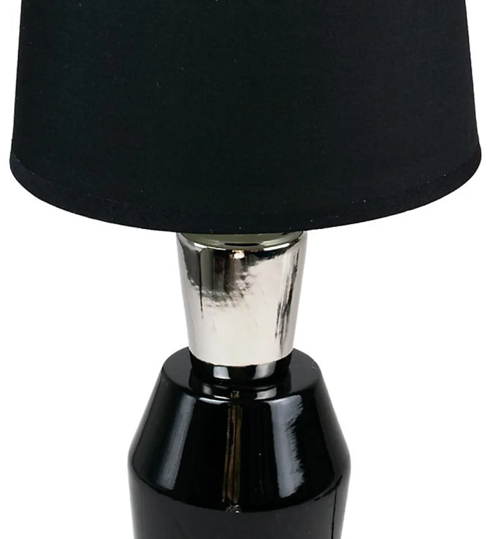Petite lampe à poser pied céramique noir et argent et abat-jour tissuCompatible ampoules LED (Ampoule basse consommation fournie)Descriptif :Couleur : noir et argentMatériau : Pied en céramique, Abat-jour en tissuUsages spécifiques : Usage intérieur uniquementDiamètre abat-jour : 20 cmHauteur Abat-jour : 18 cmHauteur totale (socle et abat-jour) : 44 cmCaractéristiques techniques :Type d’ampoule compatible : LED, Halogène, Fluo compacteType de culot : E14Puissance : 40 WattsAmpoule incluse : OuiVolt : 230Branchement : prise secteurType d’interrupteur : Bouton basculeOptez pour cette petite lampe à poser en céramique dont le design sobre mais élégant s’adaptera à tous les styles d’intérieur.D’une hauteur total de 44 cm, cette lampe à poser conviendra à la décoration de votre salon ou de votre chambre comme lampe de chevet.L’utilisation d’un luminaire adapté aux ampoules LED vous permettra de réaliser des économies d’énergie