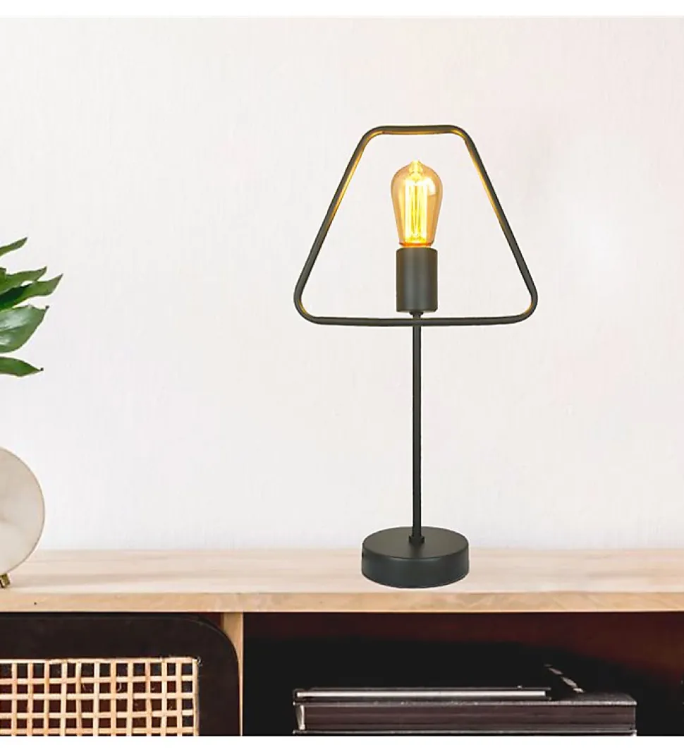 Lampe déco en métal noir E27 / 60. W max (Ampoule non fournie)Craquez pour cette lampe décorative en métal noir pour une touche industrielle dans votre intérieur !DESCRIPTIF :- Type de produit : Lampe à poser- Matériau : Métal- Finition : Noir- Usage : IntérieurCARACTERISTIQUES TECHNIQUES : – Dimensions : H : 45 cm – L : 25 cm- Compatible Ampoules : LED, Halogène, basse consommation- Culot : E27- Nombre d’ampoule : 1 (non fournie)- Puissance : 60 Watts max. – Interrupteur : Oui- Voltage : 230. VCE QUE NOUS AIMONS : Cette lampe à poser au look industriel ravira les fans de déco.Son design épuré tout en métal noir fait de cette lampe une pièce unique qui embellira instantanément votre pièce.Cette lampe possède également un interrupteur pour une mise hors tension rapide.Astuce déco, accompagnez cette oeuvre d’art d’une ampoule aux couleurs chaudes pour la mettre en valeur.Préférez l’utilisation d’ampoules LED avec cette lampe en bois naturel pour des économies d’énergies .