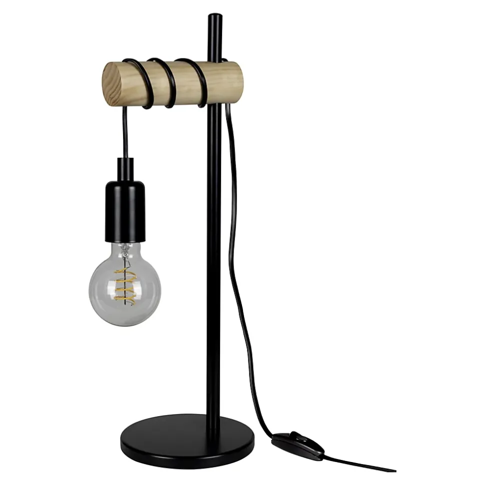 Lampe à poser effet bois et métal noir E27 Ø15.7cm x H.49 cm 42W GoodHome Hornero