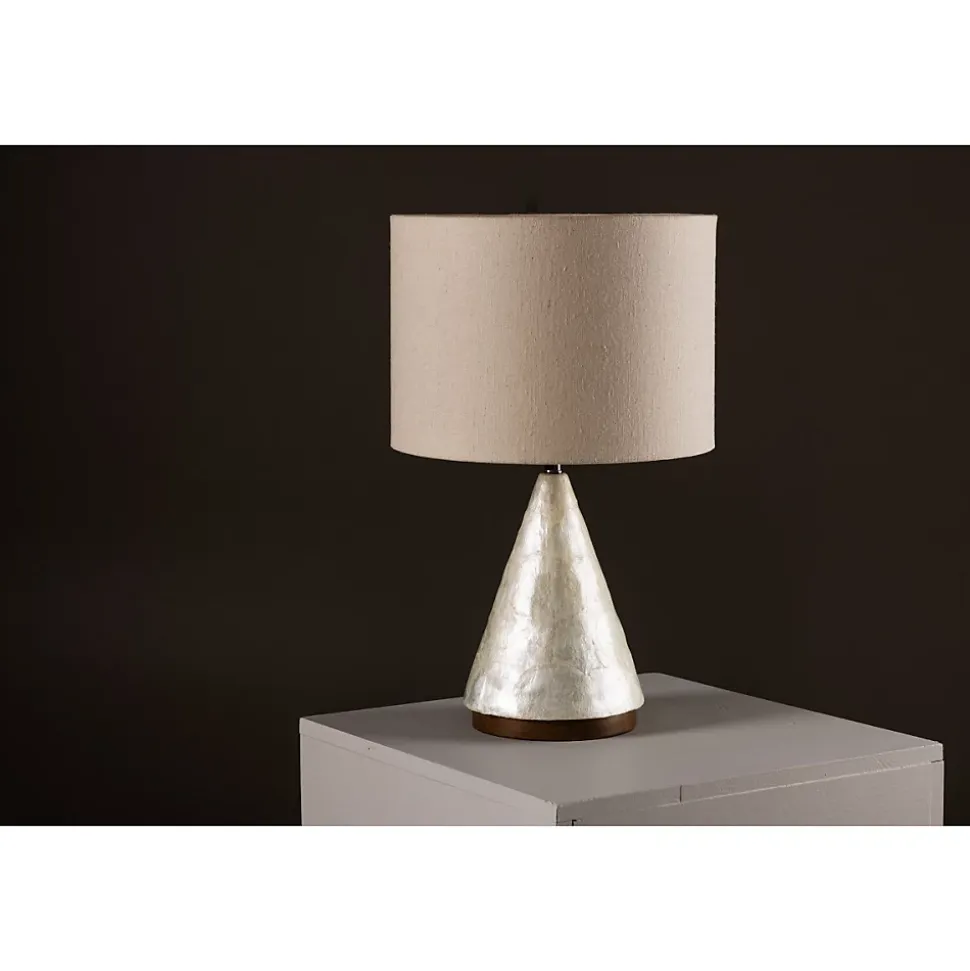 Informations Techniques :Dimensions : D. 35 x H. 56 cmMatières : Capiz, Jute & PVCSpécificités :Moderne & ÉléganteLampe de table designAbat jour en jutePied pyramidalInterrupteur on/offAmpoule non incluseDouille : E27Puissance : 60WPoids : 2,5 kgCouleur : Naturel