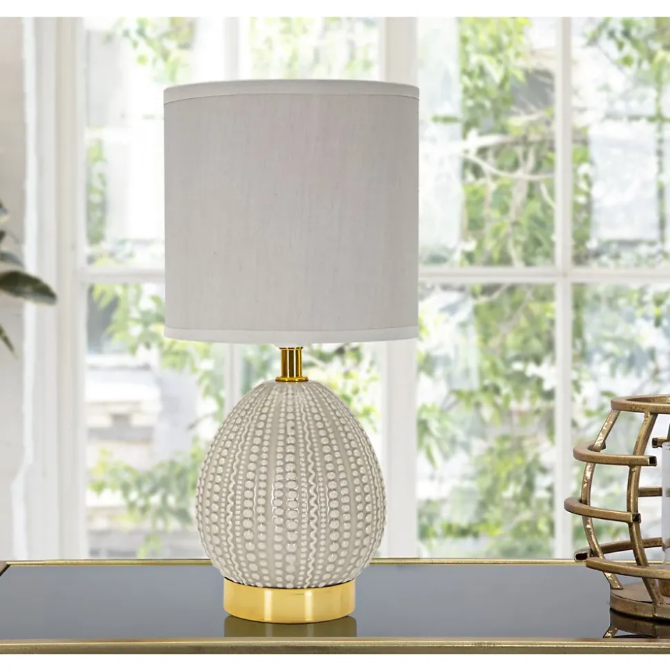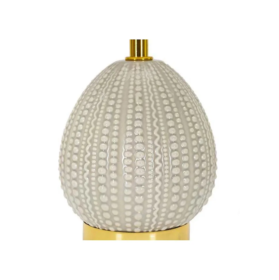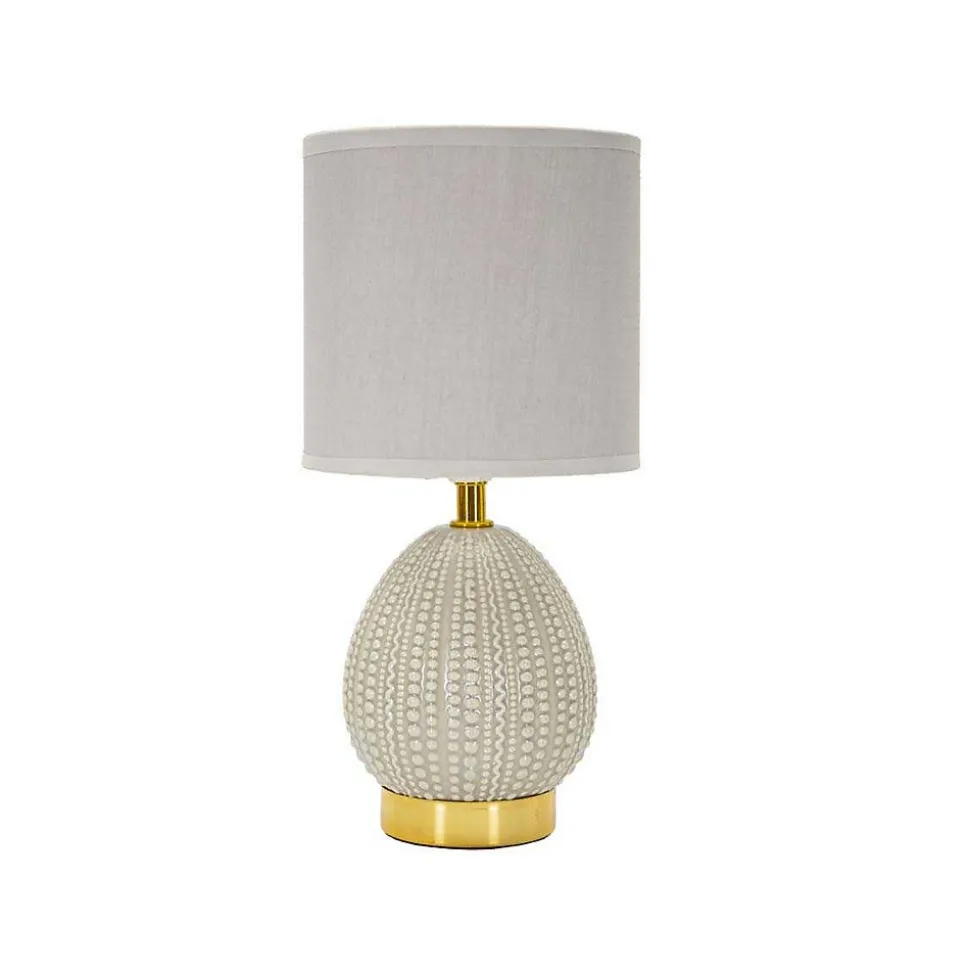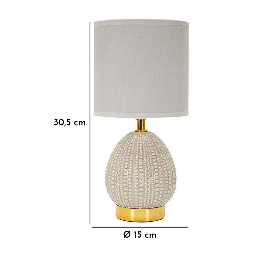 Aspect : Matériau principal = Céramique • Matériaux secondaires = Métal Tissu • Dimensions : Diamètre (en cm) = 15 • Hauteur (en cm) = 30,50 • Autres caractéristiques : Informations complémentaires = Ampoule compatible E14 non fournie • Poids (en kg) = 0,55 • Lampe à poser en céramique et métal Flavi 15 x 30.5 cm