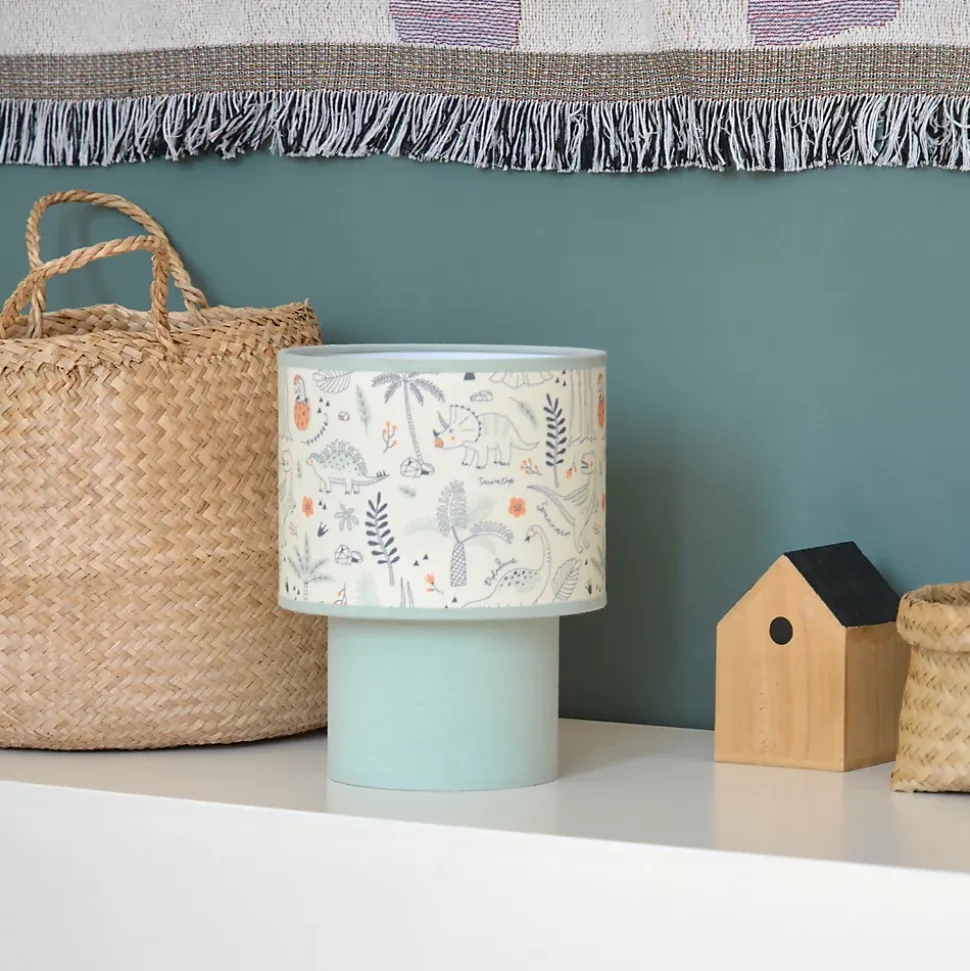 Lampe à poser enfant bleu tissu dinosaure H.22cm E27 40W Seynave