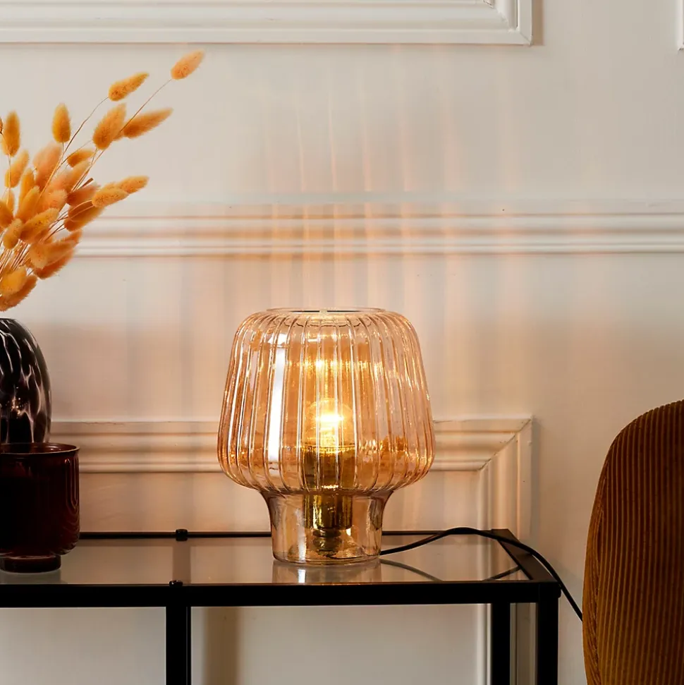 Lampe à Poser – HOME DECO FACTORYCette lampe à poser en verre fumé est conçue pour apporter une touche moderne à votre intérieur. Elle peut être placée sur une table de chevet ou un bureau, offrant ainsi une source de lumière élégante et fonctionnelle.Caractéristiques techniques :- Matériau : Verre fumé- Dimensions : Hauteur 21 cm, Largeur 18 cm, Profondeur 18 cm- Fonctionnalité : Port USB intégréAvantages :Cette lampe combine esthétique et praticité grâce à son design contemporain et son port USB, permettant de charger des appareils électroniques tout en éclairant votre espace.