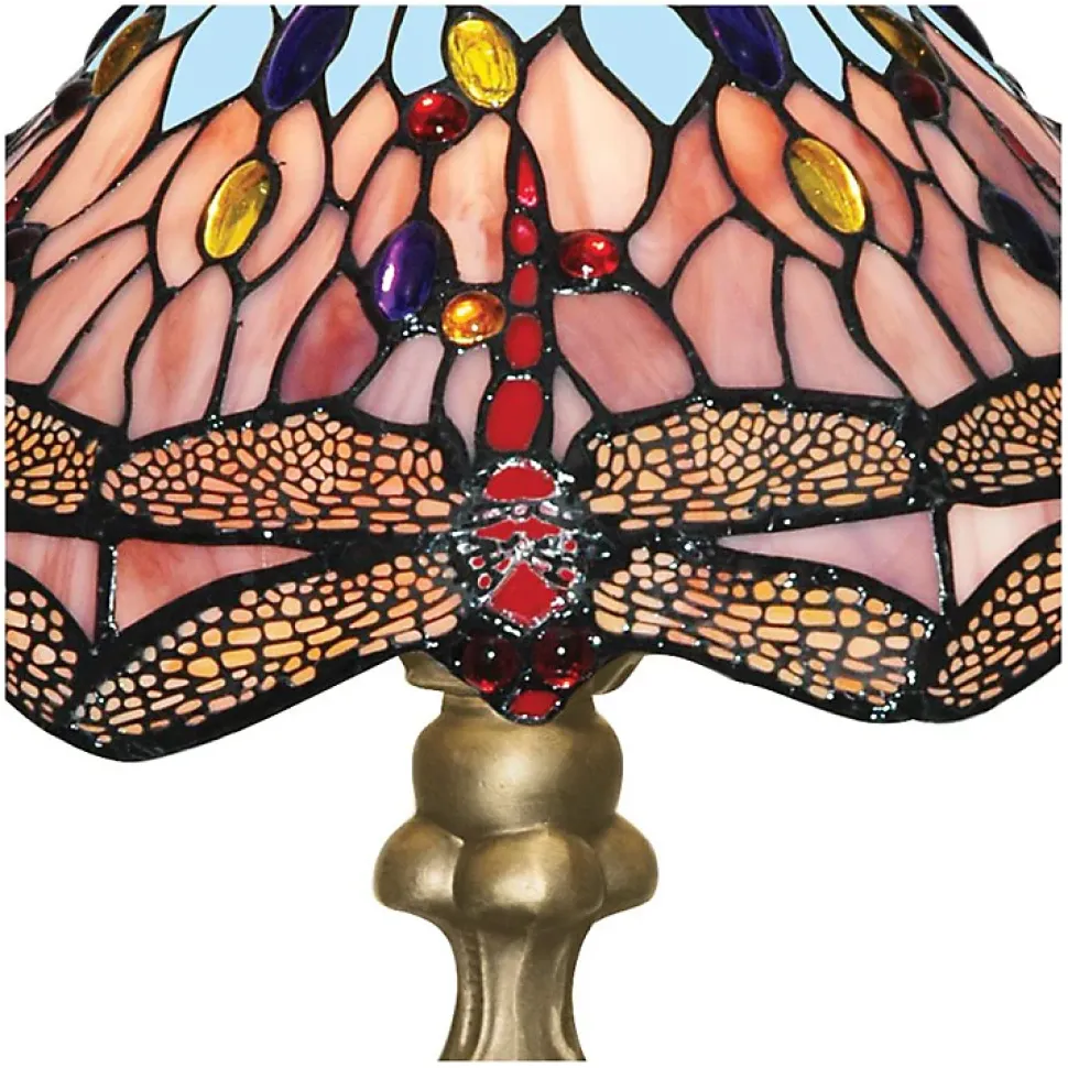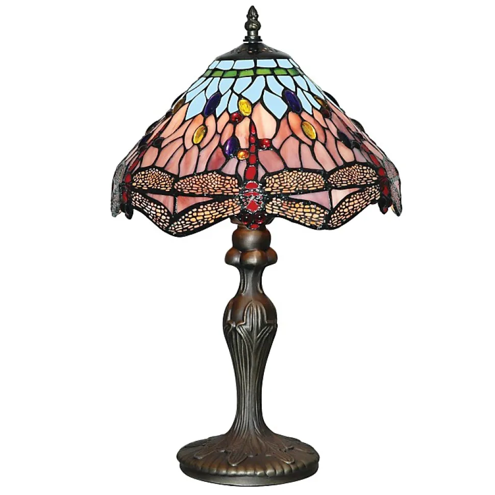 Lampe à poser Laiton antique, verre multicolore TIFFANY E27 max 60w Diam 31cm Haut 45cm DRAGONFLY