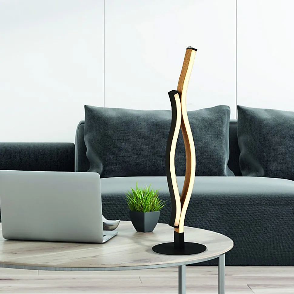 Lampe à poser metal noir avec branche metal noir et effet bois Led 11w 935 lumens réglables 2700k-3000k-4000k et dimmable par inter sensitif sur cordon 1LT BLOOM LED