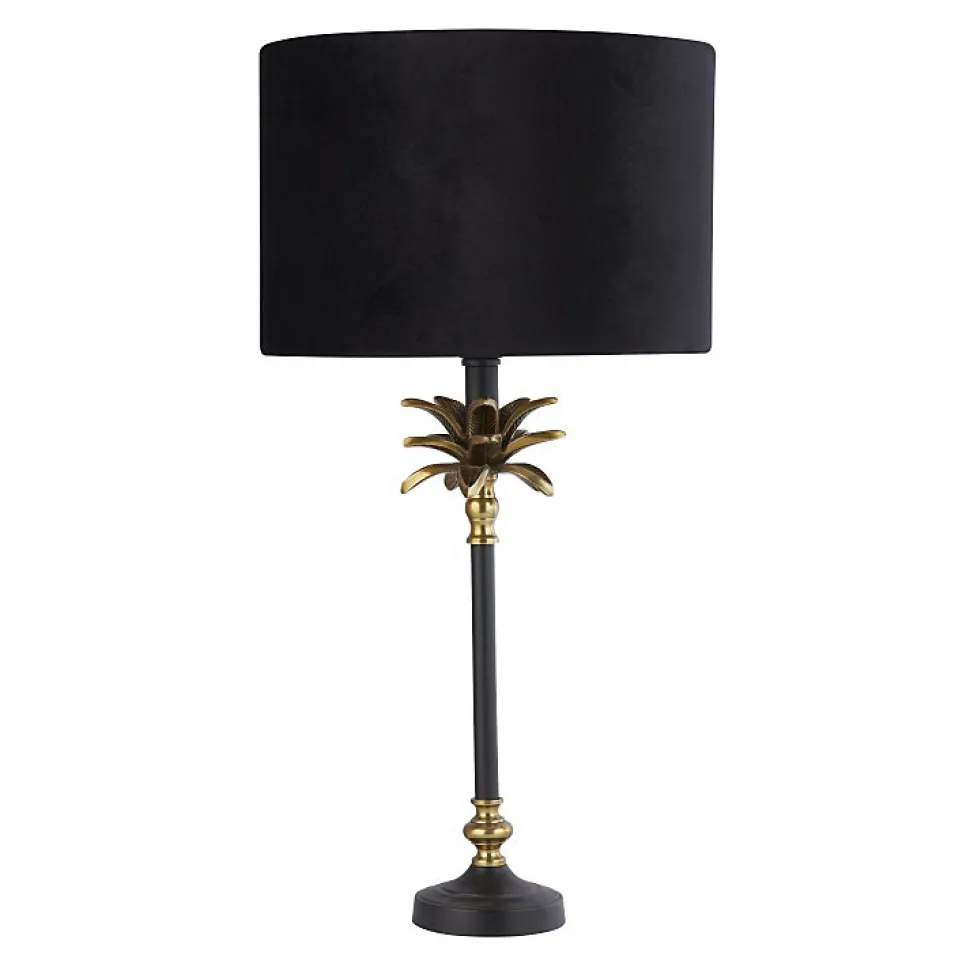 Lampe à poser metal noir et laiton antique et abatjour velour Noir, Doré Interieur E27 max 60w Haut 65cm Diam 40cm PALM 1LT