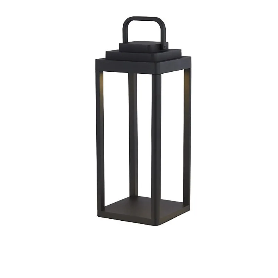 Lampe à poser metal noir mat portable rechargeable outdoor IP54 USB 2w 180 Lumens 3000k Haut 35cm Larg 15cm PORTOBELLO