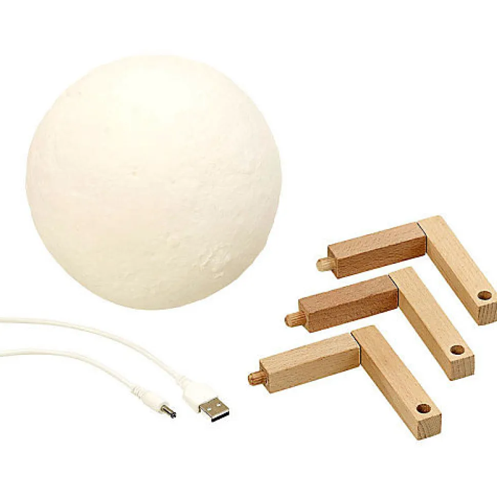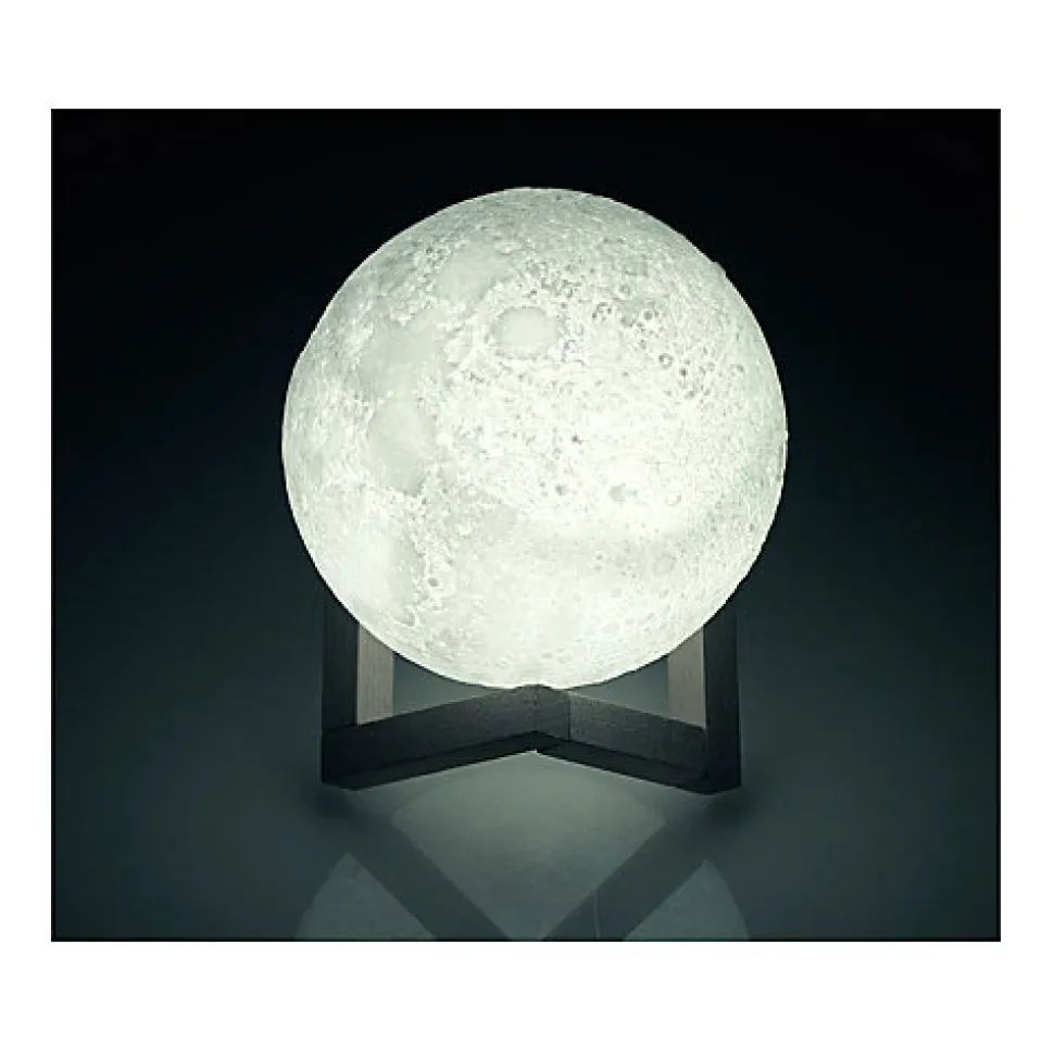 Cette lampe d’ambiance et objet déco MoovyMoon s’exposera comme une oeuvre artistique et décorative originale dans votre salon ou toute autre pièce de vie pour une déco personnalisée.Cette lampe design MoovyMoon vous charmera par son idée originale d’une sphère éclairée qui se veut une reproduction miniature et fidèle de l’astre lunaire, ce résultat est obtenu par une technique d’impression 3D, réalisée par superposition de couches successives.Une fois allumée, vous pourrez vous émerveiller en observant tous les détails de la surface de la Lune qui se caractérise par une multitude de cratères de taille diverse et d’immenses étendues sombres, appelées mers lunaires.Posé sur un socle en bois au style au design graphique et minimaliste, ce globe lunaire diffuse une lumière à 360° douce et tamisée qui contribuera à générer une atmosphère apaisante, comme si vous étiez éclairée par une pleine Lune. Cette lampe Lune est équipée de LEDs qui produit une lumière uniforme par rétro éclairage et qui ont l’avantage d’être peu consommatrices en électricité.Soigné dans les moindres détail, ce globe lunaire est très joliment mis en valeur posée sur un élégant support en bois au style géométrique et épuré.Pour un cadeau original et classieux, les fans d’astronomie qui ont des étoiles plein les yeux ou qui ne font que rêver au claire de Lune, pourront vous demander la Lune et ils seront bien surpris et admiratif devant cette lampe objet déco MoovyMoon qui les ravira sans conteste.<span style= »col