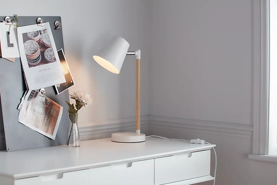 Nos lampes à poser ont été conçues dans un certain nombre de styles, de finitions et de caractéristiques pour vous permettre de trouver facilement celle qui vous convient. La lampe à poser en blanc satiné et en bois clair permet de fournir un éclairage direct parfait pour vos tâches quotidiennes