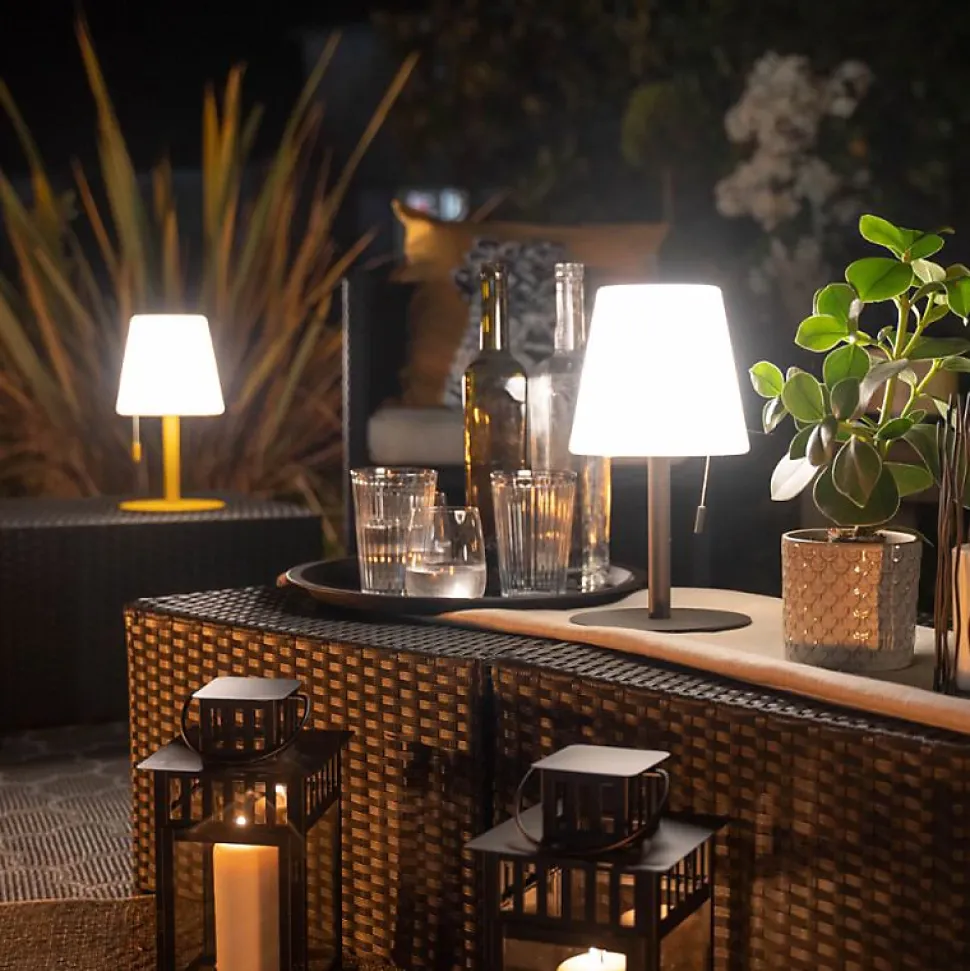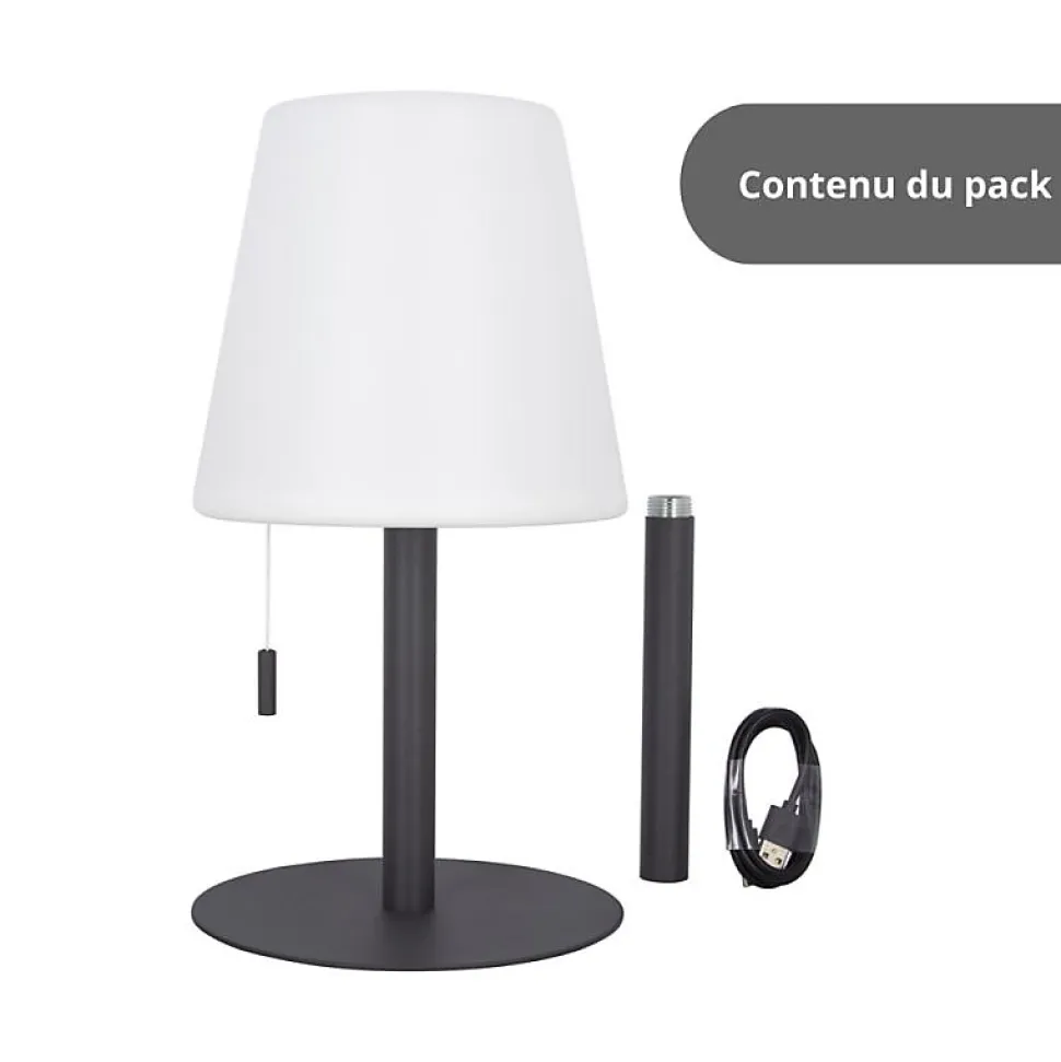Xanlite – Lampe à poser POP – cône gris rechargeable en métal LED IP44, 400 lumens, CCT et dimmable, hauteur ajustable – LP16CGRCCT