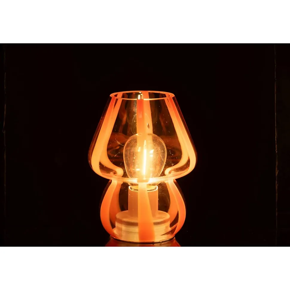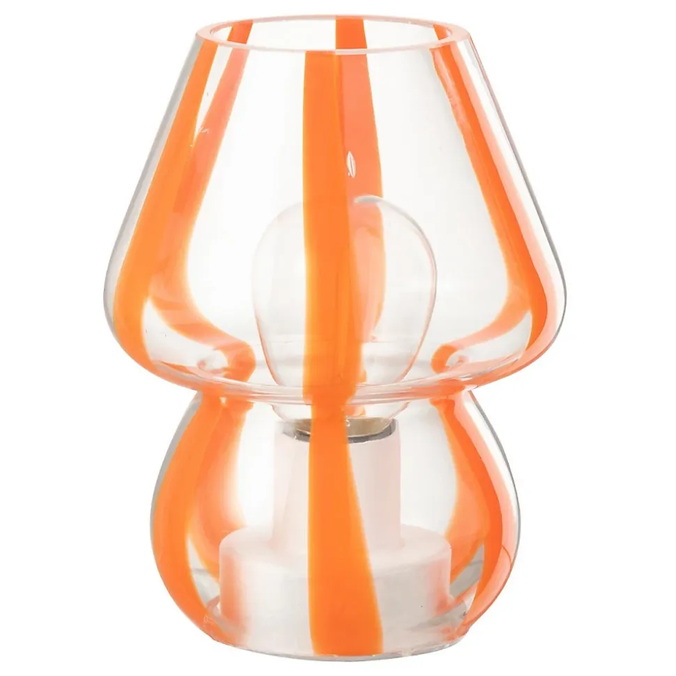 Informations Techniques :Dimensions : L. 11 x l. 11 x H. 15 cmMatières : 80% Verre & 20% PlastiqueSpécificités :Élégante & ColoréeLampe à poser designImprimé à rayuresUsage intérieur/extérieurAmpoule non incluseVendue à l’unitéDouille : E27Puissance : 40 WPoids : 0,22 kgCouleur : Orange & Transparent
