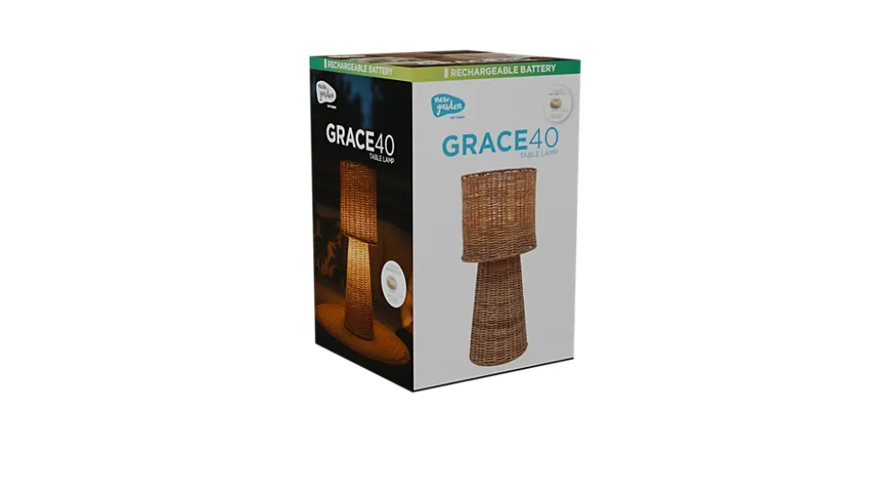 - La lampe de table GRACE 40 BATTERY est fait avec fibres naturelles, apportant chaleur et caractère à n’importe quel environnement. C’est idéal pour éclairer les espaces intérieurs ou extérieurs.