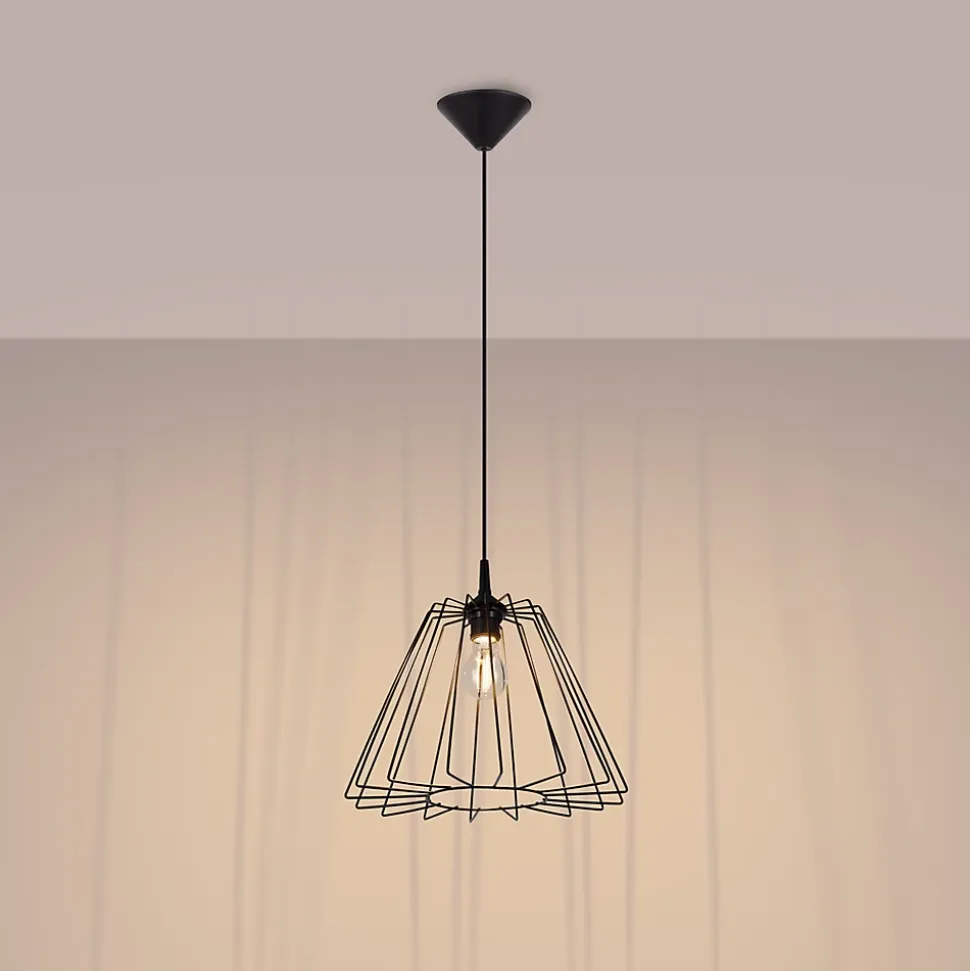 - Minimalisme moderne avec un abat-jour géométrique fait de fines tiges.
