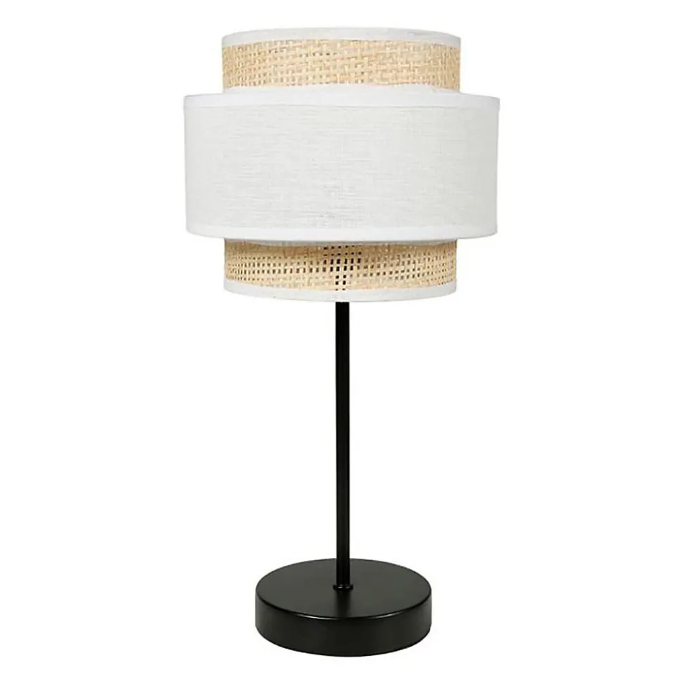 Lampe abat-jour papier rotin 3 niveaux blancCréez une atmosphère lumineuse pratique et originalement vintage grâce à la lampe abat-jour papier rotin 3 niveaux blanc. Cette lampe avec son abat-jour façon rotin apportera du renouveau à votre éclairage avec son look élégant.Informations sur la lampe abat-jour papier rotin 3 niveaux :Composition : métal, papierDimensions : D. 20 x H. 37 cmDouille : E14 (ampoule non fournie)Poids : 850 g