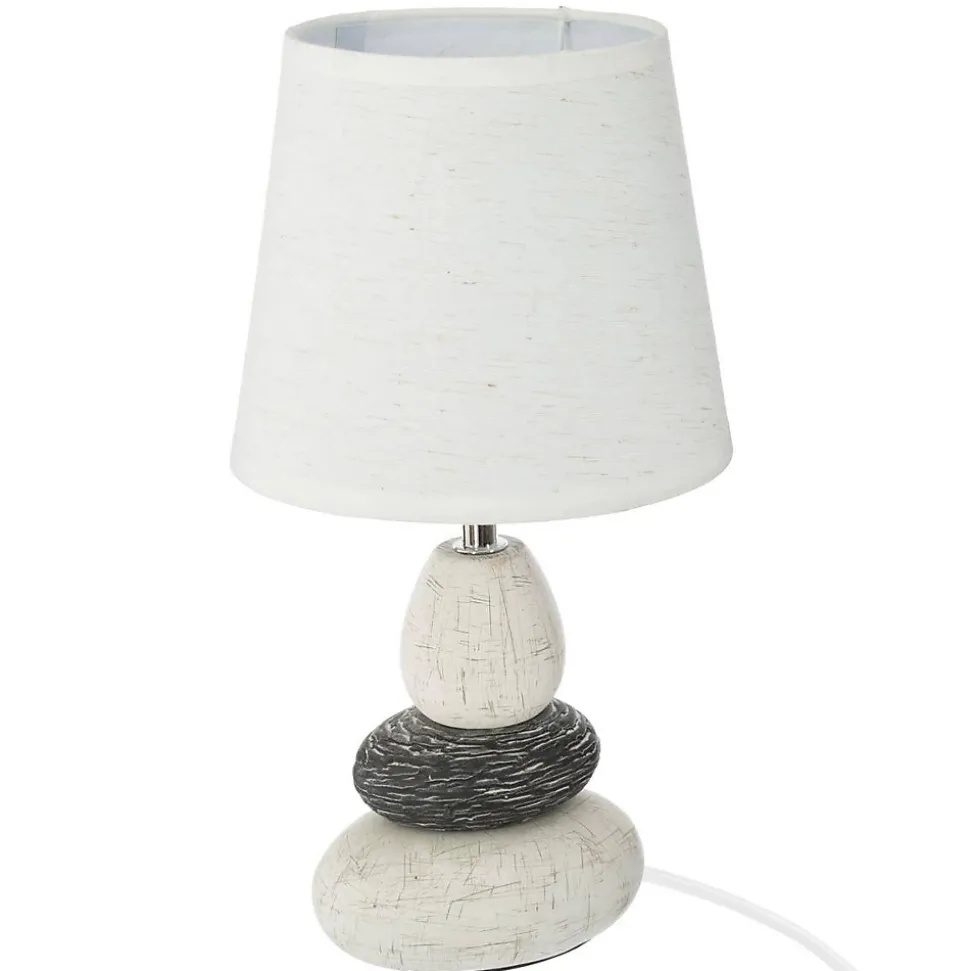 Envie d’insuffler un petit air de vacances dans votre intérieur ? Découvrez la lampe « Clary » Atmosphera ! Une touche déco au naturel Avec son socle en céramique représentant trois galets empilés, cette lampe se démarque tout en restant sobre. Son abat-jour en PVC et métal offre instantanément une lumière apaisante pour l’esprit. Un luminaire qui invite au voyageLes 3 galets en céramique qui forment le pied imitent parfaitement les petits amas de pierres que les explorateurs laissent sur les sentiers. Comme eux, posez votre empreinte ! Que vous soyez plutôt montagne ou bord de mer, la lampe « Clary » Atmosphera s’inscrira tout en douceur dans n’importe quelle pièce. Restez dans le coté naturel en posant cette lampe sur une commode en bois Atmosphera.Le petit plus déco Jouez le total look zen en associant votre lampe « Clary » Atmosphera avec une fontaine d’intérieur type cascade.