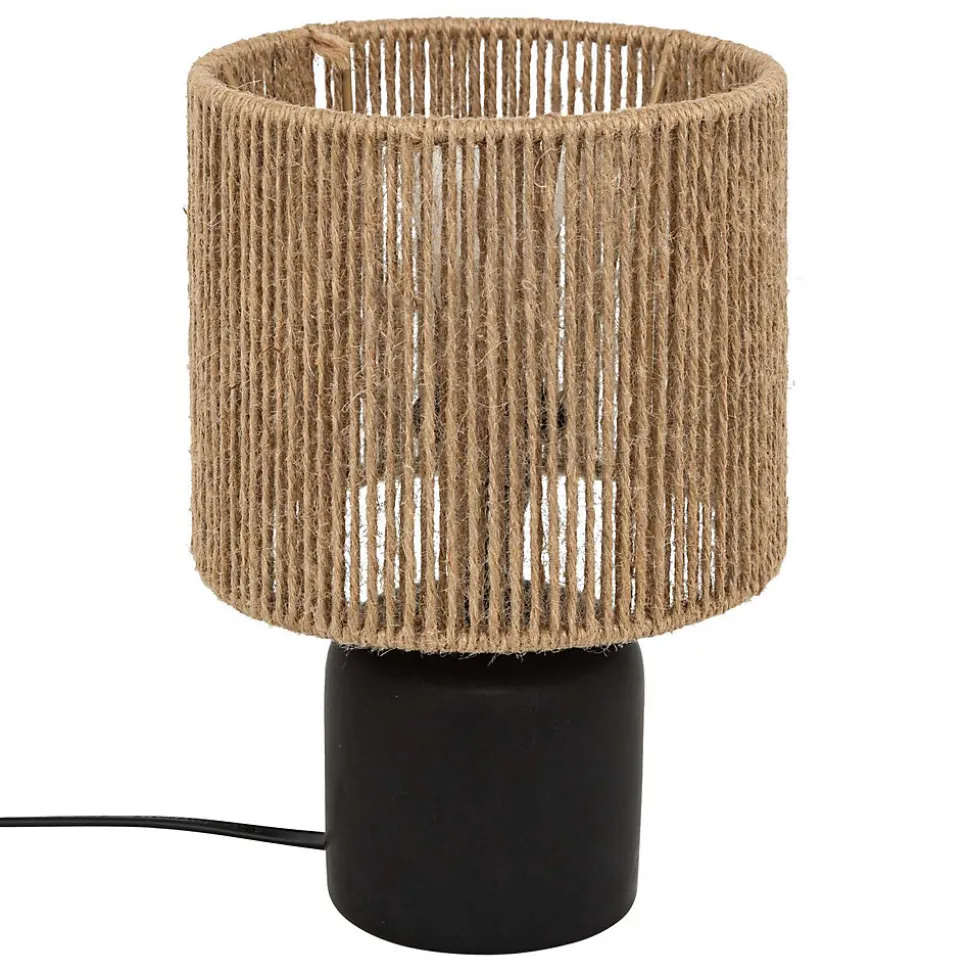 Fondez pour notre lampe cylindre en céramique, cette dernière ajoutera une note naturelle sur une table de chevet ou une console. La base en céramique de couleur neutre contraste joliment avec l’abat-jour recouvert de chanvre.FICHE TECHNIQUE- Lampe à poser- Matière de la base : Céramique- Matière de l’abat-jour : Chanvre et Métal – Acier- Type d’interrupteur : Mécanique- Type d’ampoule : E14- Puissance max : 40 watts- Ampoule non incluse- Utilisation : IntérieurCARACTERISTIQUES TECHNIQUES- Dimensions : Diamètre 16 cm x Hauteur 24 cm- Longueur du câble : 130 cm- Poids : 0,57 kg
