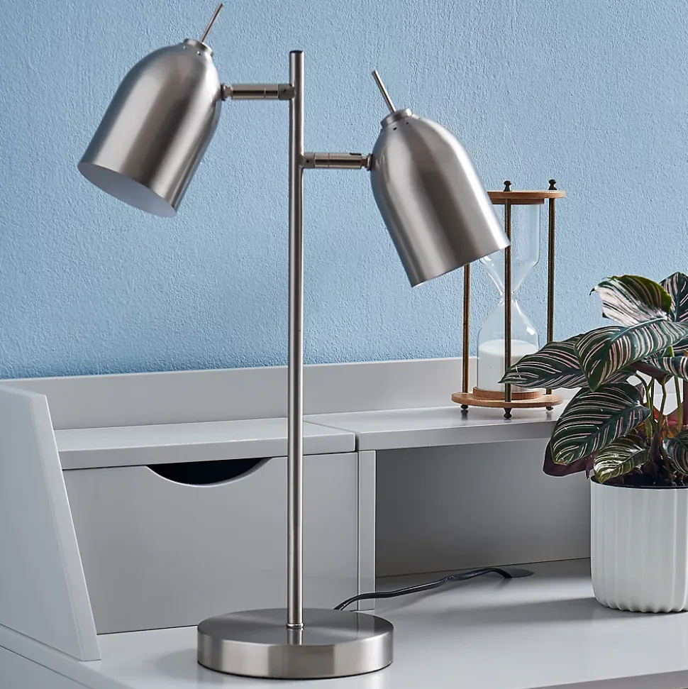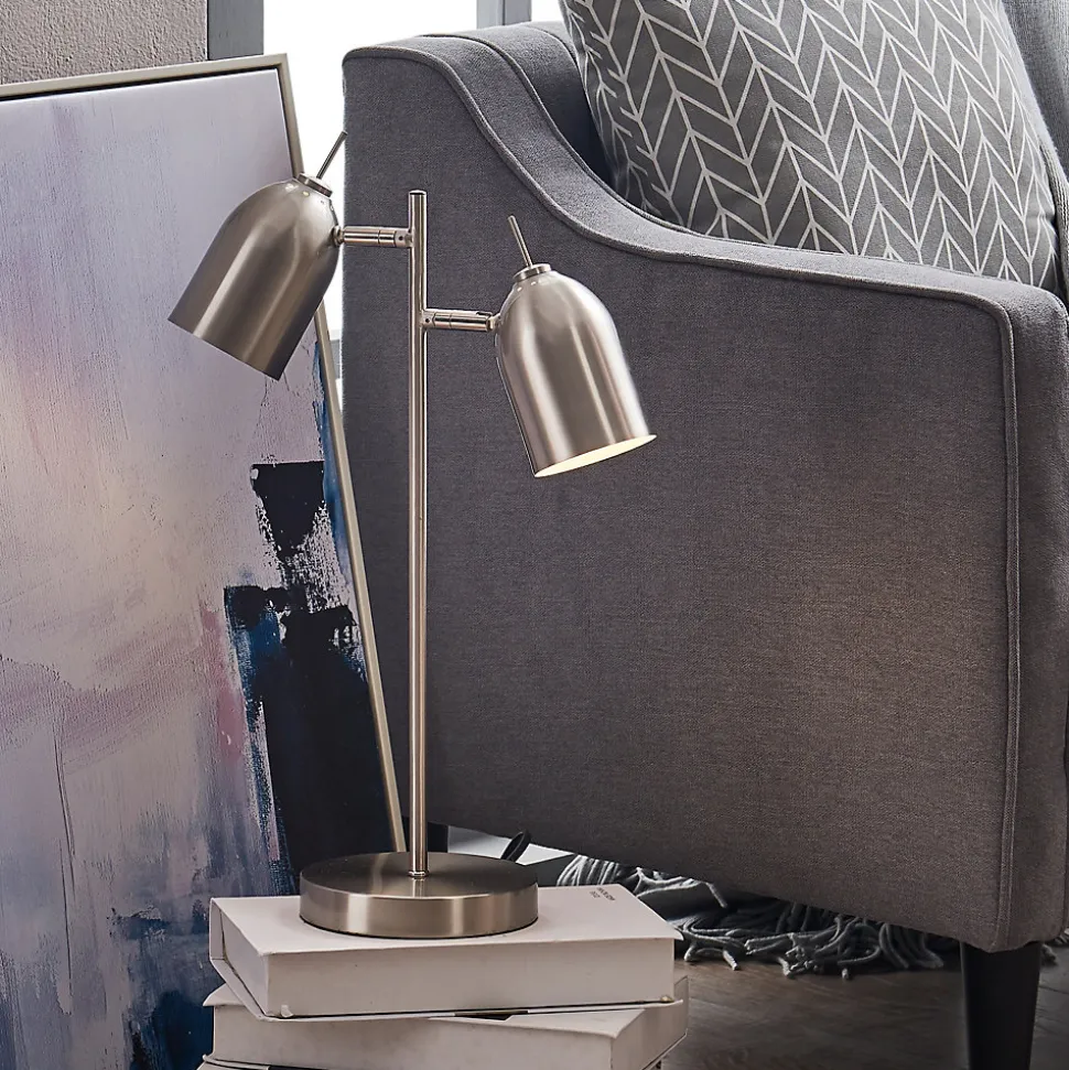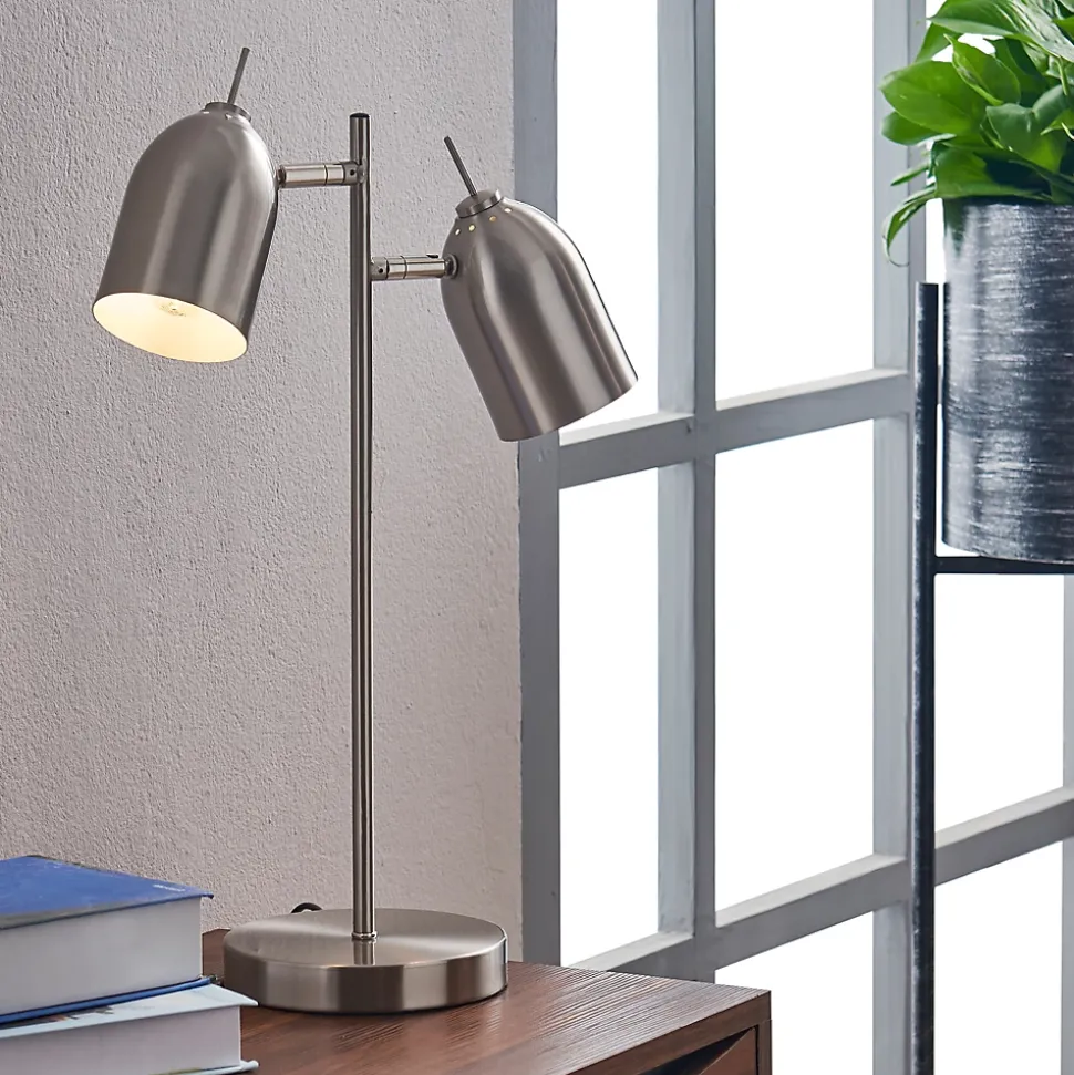 Lampe de table ajustable à double éclairage avec finition chromée, idéale pour le salon, la chambre ou le bureau. Son design moderne apporte une touche élégante à tout intérieur.