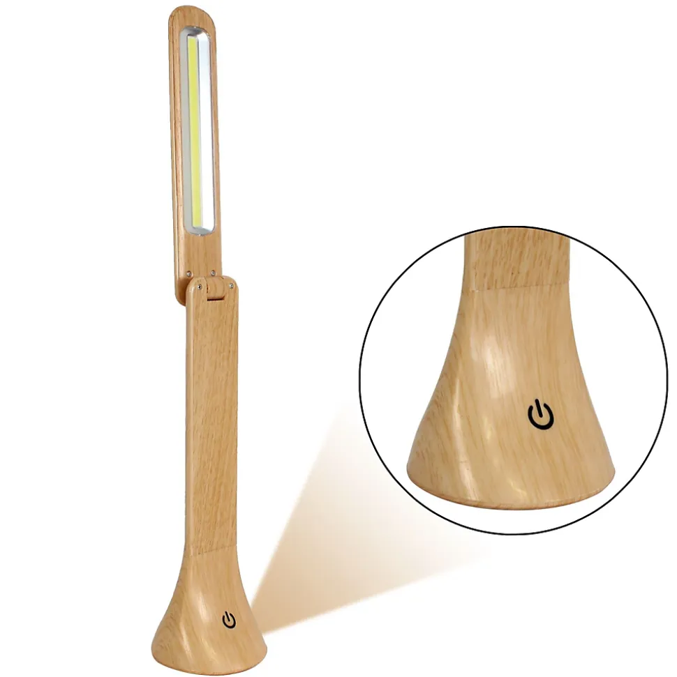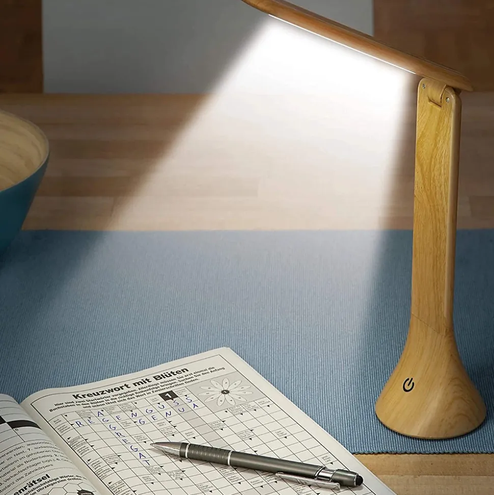 – LAMPE DE BUREAU DESIGN – Cette lampe de bureau à LED à la silhouette élancée et à la finition effet bois s’intégrera parfaitement à tous les intérieurs et toutes vos pièces de la maison : bureau, salon, sur la table ou comme lampe de chevet dans une chambre enfant ou adulte. – BRAS PIVOTABLE – Avec un bras flexible à 180° et un axe de base à 90°, vous pouvez tourner ou régler facilement la direction d’éclairage de la lampe de Bureau Led pour un meilleur angle d’éclairage, adapté à toutes voas activités. – COMMANDE TACTILE – La lampe tactile dispose d’un bouton On/Off Soft Touch ,qui vous permet de l’allumer d’un simple effleurement du doigt. Simple, ce bouton permet à la fois d’allumer et d’éteindre et de choisir l’intensité lumineuse voulue. – LUMIERE LED – La lampe de table dispose de 3 niveaux d’intensité lumineuse (Puissance 100 Lumens). Vous pouvez ainsi choisir à votre gré une lampe d’ambiance ou lampe de lecture. La lampe LED sans fil a une double alimentation, USB ou piles pour l’installer où vous le souhaitez. – CARACTERISTIQUES – Dimensions : 7.8 x 7.8 x 24.8 cm pliée – Matières : Plastique ABS, polystyrène finition bois clair – Alimentation : USB ou 3 piles AA (non incluses) – Accessoires : Câble USB 1m (inclus), chargeur (non inclus) – Certifié CE et RoHS – Garantie 2 ans