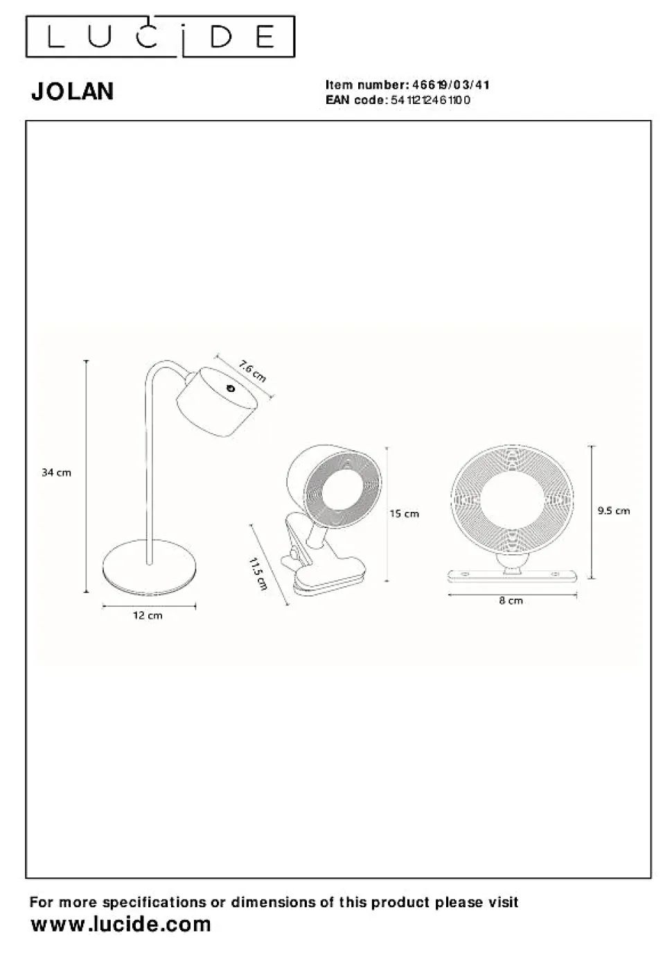 La lampe de bureau Lucide JOLAN est une solution élégante et polyvalente pour les espaces de travail modernes. Grâce à sa lampe LED intégrée et dimmable, vous pouvez facilement ajuster la température de couleur de 2700K à 5700K, idéale pour chaque moment de la journée. Son bras pivotant et inclinable offre une flexibilité optimale et une précision d’éclairage. Contrôlez la lampe sans effort avec la télécommande fournie et profitez jusqu’à 6 heures d’éclairage sans fil grâce à sa batterie intégrée puissante. Son design taupe élégant, fabriqué en plastique de haute qualité, fait de la JOLAN un élément à la fois fonctionnel et esthétique sur votre bureau. Aussi utilisable comme applique murale ou lampe à pince avec les accessoires supplémentaires fournis.Caractéristiques uniques:• Équipé d’une lampe LED intégrée à intensité variable• Température de couleur réglable via télécommande (2700K-5700K)• Cette lampe est rotative et inclinable• Peut être utilisé via la télécommande fournie• Fabriqué en plastiquePrincipales caractéristiques du produit:• Fonctionne sur une batterie de haute qualité (jusqu’à 7 heures de fonctionnement à puissance maximale)• Consommation énergétique: 1×3,5W / 5V / A intensité variable (Ampoule incluse)• Dimensions: Lon.18 x Larg.12 x Haut.36 cm• 3 Ans garantie sur le luminairePourquoi choisir l’éclairage Lucide?Lucide incarne un design innovant, un savoir-faire artisanal et une fiabilité exemplaire. En tant qu’entreprise familiale belge avec plus de trois décennies d’expertise, nous concevons des éclairages de haute qualité qui enrichissent et transforment chaque espace, tant intérieur qu’extérieur. Notre collection polyvalente comprend des luminaires durables et des sources lumineuses économes en énergie, soigneusement conçus par nos propres experts et fabriqués selon les normes CE les plus strictes. Grâce à notre large gamme, nous vous proposons toujours un…