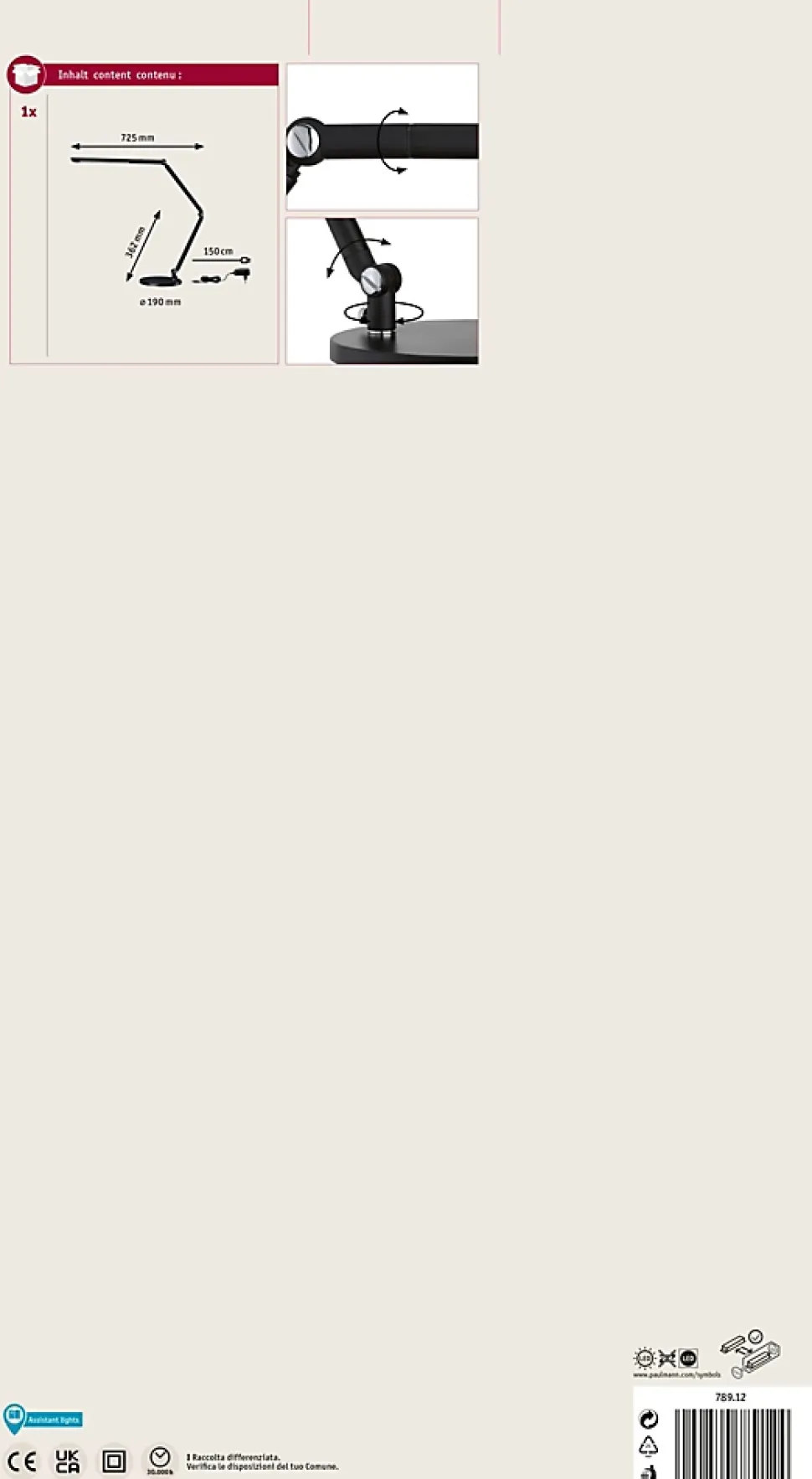 orientation simple de l’éclairage au moyen d’un bras flexible réglable|Incluant ampoule (intégrée dans luminaire)|Réglage de la lumière blanche de blanc chaud à blanc lumière du jour