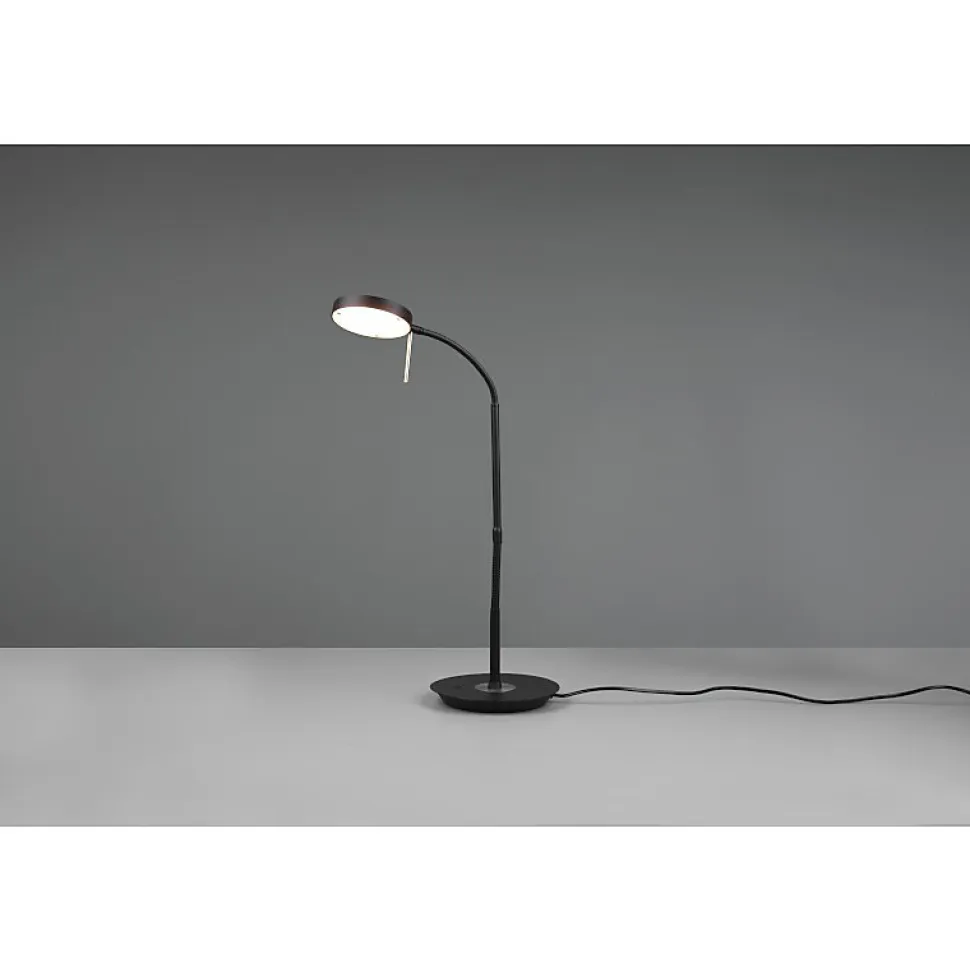 Les caractéristiques techniquesCette lampe de bureau peut également être utilisée comme lampe de table. Elle est en métal noir mat.Son pied articulé en deux endroits vous permet d’orienter la source lumineuse à votre gré.Elle diffuse grâce à la puce Led de toute dernière génération une lumière de qualité blanc chaud reposante ou blznc neutre dynamisants sans aucun effet de scintillement, sa consommation électrique très faible 12 watts à l’heure vous permet de l’utiliser comme fond lumineux d’ambiance grâce à l’intensité lumineuse variable.Le variateur sensoriel situé sur son socle vous permet d’agir sur l’intensité lumineuse et la température de couleur.La fonction mémoire vous restituera le dernier réglage lors de l’allumage suivant.Les avantages esthétiquesLes designers de Trio ont créé la lampe led Monza pour apporter une touche technique et contemporaine à votre bureauSon design épuré lui permet de se marier à tout style de décoration.Cette lampe convient particulièrement à un bureau ou comme lampe de lecture.Dans un salon d’accueil, ou tout simplement sur un meuble , elle renforcera une ambiance cosy.Son pied articulé en deux endroits vous permet de diriger le faisceau lumineux où bon vous semble.Grâce au variateur sensoriel, vous pourrez choisir intensité lumineuse et température de couleur en fonction de l’ambiance souhaitée ou de votre activité du moment (pour rappel, une température de couleur de 2300 à 3000 kelvins, dite blanc chaud apportera une ambiance chaleureuse et reposante alors qu’une température de 4000 kelvins dite blanc neutre ou lumière du jour favorisera une athmosphère dynamisante et vous procurera un rendu fidèle des couleurs.)