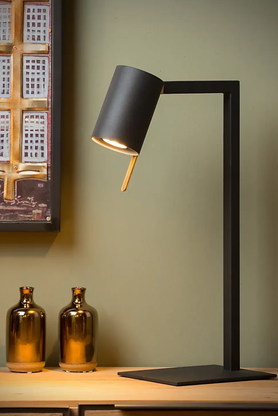 Le design élégant de Lesley est raffiné et tendance. Cette lampe de table pratique est inclinable verticalement. Idéal pour illuminer un coin de lecture confortable ou pour mettre en valeur cette oeuvre d’art unique. Le luminaire angulaire moderne s’adaptera à de nombreux bureaux. Le manche doré donne à l’ensemble un caractère exclusif. Extra pratique : vous pouvez facilement allumer et éteindre cette lampe de table moderne grâce à un interrupteur intégré sur le cordon. Lesley garantit un design pratique et raffiné.Caractéristiques uniques:• Utilisable avec une source lumineuse LED• Cette lampe est rotative (verticalement)• Avec un interrupteur On/off sur le câble• Fabriqué en métalPrincipales caractéristiques du produit:• Consommation énergétique: 1x35W / 230V / Sans intensité variable (Ampoule non incluse)• Dimensions: Lon.28 x Larg.16 x Haut.50 cm• 2 Ans garantie sur le luminaire / source de lumière appropriée est EAN: 5411212490643Pourquoi choisir l’éclairage Lucide?Lucide incarne un design innovant, un savoir-faire artisanal et une fiabilité exemplaire. En tant qu’entreprise familiale belge avec plus de trois décennies d’expertise, nous concevons des éclairages de haute qualité qui enrichissent et transforment chaque espace, tant intérieur qu’extérieur. Notre collection polyvalente comprend des luminaires durables et des sources lumineuses économes en énergie, soigneusement conçus par nos propres experts et fabriqués selon les normes CE les plus strictes. Grâce à notre large gamme, nous vous proposons toujours une solution d’éclairage adaptée, quel que soit le style ou l’espace. Ainsi, nous illuminons non seulement votre espace de vie mais aussi votre processus de choix dans la recherche d’un éclairage de qualité et abordable. Chez Lucide, nous combinons innovation et savoir-faire pour un éclairage qui ajoute non seulement de l’ambiance, mais transforme chaque maison en foyer.