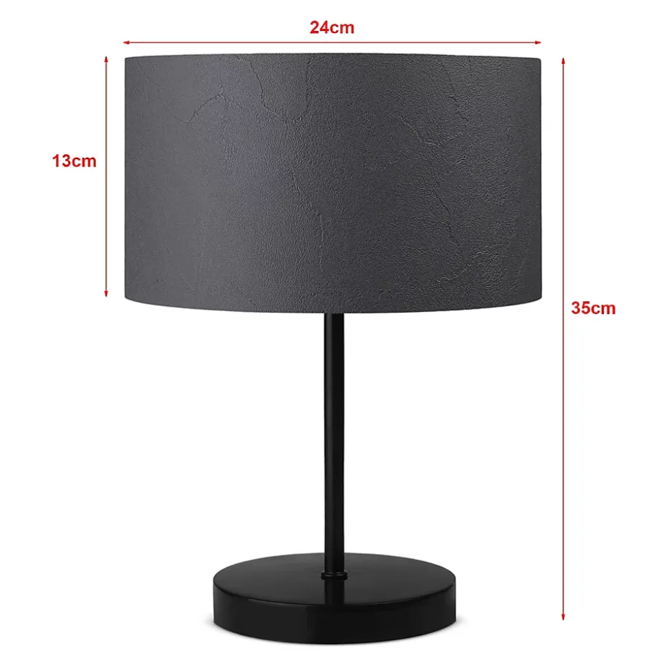 Lampe de bureauCette lampe de table design et moderne sera l’ornement de la pièce en s’adaptant à la décoration de la maison.Description :- luminaire de style intemporel- conçu pour un éclairage intérieur- doté d’une douilleCaractéristiques :- douille : 1 x E27, max. 20W (sans ampoule)- alimentation : 230V, 50Hz- type d’interrupteur : sur câbleMatière :- structure : métal- abat-jour : PVCDimensions :- hauteur totale : 35 cm- abat-jour (hauteur x diamètre) : 13 x 24 cm- longueur de câble : 150 cmCouleur :- structure : noir- abat-jour : anthraciteContenu de la livraison :1 x lampe de chevet [l’ampoule ne fait pas partie de l’offre]Produit de la marque :[lux.pro]