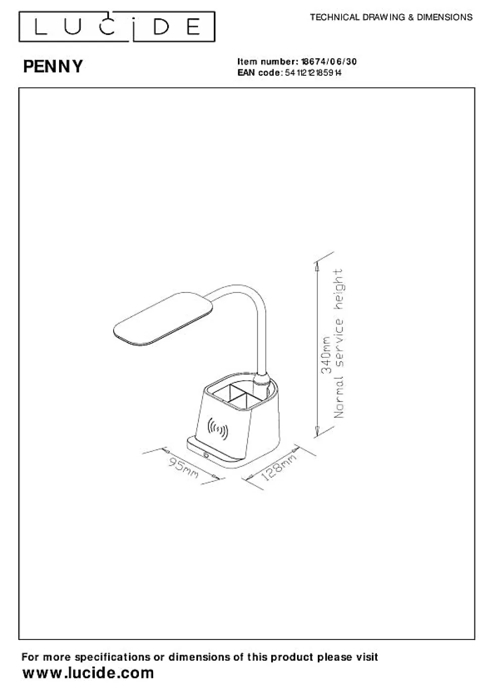 Ça y est. La lampe de bureau idéale est juste devant vous. Penny a tout ce dont vous avez besoin pour vous concentrer sur vos études de manière ciblée et efficace. Lumière extra brillante de 3 000 K ? Check. Plateforme de recharge sans fil intégrée pour smartphones ? Check. Équipé d’un porte-plume ? Check. Intensité réglable ? Quadruple check. De plus, Penny est facilement réglable en hauteur et équipé d’un bras de lecture flexible. Bref, tout ce dont une lampe de bureau a besoin. Moderne, intemporel et efficace. Tout ce qu’il vous reste à faire, c’est marquer des points.Caractéristiques uniques:• Équipé d’une lampe LED intégrée à intensité variable• Dispose d’une lumière blanche chaude (3000K)• Avec un bras de liseuse flexible• Avec capteur tactile sur la lampe à intensité variable• La lampe dispose d’une plate-forme de chargement intégrée pour le chargement sans fil d’appareils de type SMARTPrincipales caractéristiques du produit:• Consommation énergétique: 1×4,7W / 220V / A intensité variable (Ampoule incluse)• Dimensions: Lon.9,5 x Larg.12,8 x Haut.34 cm• 3 Ans garantie sur le luminairePourquoi choisir l’éclairage Lucide?Lucide incarne un design innovant, un savoir-faire artisanal et une fiabilité exemplaire. En tant qu’entreprise familiale belge avec plus de trois décennies d’expertise, nous concevons des éclairages de haute qualité qui enrichissent et transforment chaque espace, tant intérieur qu’extérieur. Notre collection polyvalente comprend des luminaires durables et des sources lumineuses économes en énergie, soigneusement conçus par nos propres experts et fabriqués selon les normes CE les plus strictes. Grâce à notre large gamme, nous vous proposons toujours une solution d’éclairage adaptée, quel que soit le style ou l’espace. Ainsi, nous illuminons non seulement votre espace de vie mais aussi votre processus de choix dans la recherche d’un éclairage de qualité et abor…