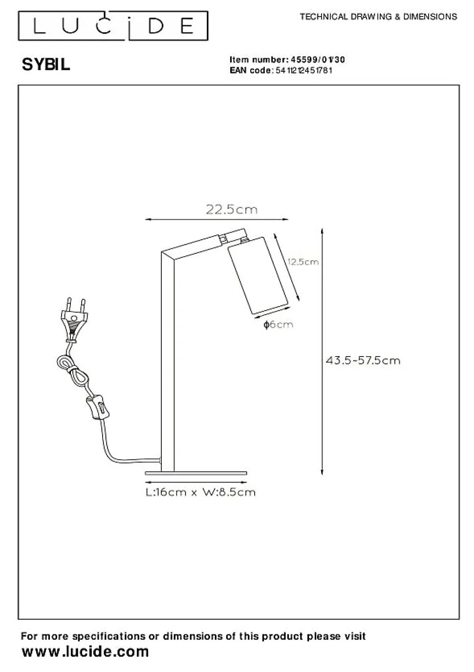 Envie d’un design soigné et d’une ambiance chaleureuse ? Sybil marie le meilleur des deux mondes. Cette lampe de table est élégamment conçue à partir d’une longue base cubique et d’un abat-jour cylindrique. Le tube en laiton contraste magnifiquement avec le bras et la base foncés. Sybil dirige son faisceau lumineux selon vos envies. Que vous travailliez sur votre ordinateur, lisiez un magazine ou mettiez de l’ordre dans vos papiers, vous bénéficierez toujours de la lumière parfaite. Allumez et éteignez-la à l’aide de l’interrupteur. Sybil répond toujours présent. La lampe mesure 43 centimètres de haut et près de 27 centimètres de long.Caractéristiques uniques:• Utilisable avec une source lumineuse LED• Cette lampe est rotative et inclinable• Avec un interrupteur On/off sur le câble• Fabriqué en acierPrincipales caractéristiques du produit:• Consommation énergétique: 1x35W / 230V / Sans intensité variable (Ampoule non incluse)• Dimensions: Lon.22,5 x Larg.8,5 x Haut.43,5 cm• 2 Ans garantie sur le luminaire / source de lumière appropriée est EAN: 5411212490643Pourquoi choisir l’éclairage Lucide?Lucide incarne un design innovant, un savoir-faire artisanal et une fiabilité exemplaire. En tant qu’entreprise familiale belge avec plus de trois décennies d’expertise, nous concevons des éclairages de haute qualité qui enrichissent et transforment chaque espace, tant intérieur qu’extérieur. Notre collection polyvalente comprend des luminaires durables et des sources lumineuses économes en énergie, soigneusement conçus par nos propres experts et fabriqués selon les normes CE les plus strictes. Grâce à notre large gamme, nous vous proposons toujours une solution d’éclairage adaptée, quel que soit le style ou l’espace. Ainsi, nous illuminons non seulement votre espace de vie mais aussi votre processus de choix dans la recherche d’un éclairage de qualité et abordable. Chez Lucide, nous combinons in…