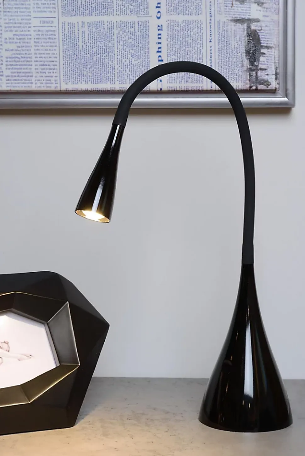 Design ludique en toute simplicité, voici la lampe de table Zozy de Lucide. La lampe Zozy est une lampe de bureau, de commode ou de chevet à un prix abordable avec une base en plastique et un cou flexible. La lumière de la lampe Zozy peut être tamisée (3 éclairages différents) grâce à un bouton tactile qui vous permettra de trouver l’éclairage adéquat. Avec sa LED 3W blanc chaud, la lampe Zozy est également très économe en énergie! La lampe Zozy est disponible en noir brillant et blanc brillant.Caractéristiques uniques:• Équipé d’une lampe LED intégrée à intensité variable• Dispose d’une lumière blanche chaude (3000K)• Avec un bras de liseuse flexible• Avec capteur tactile sur la lampe à intensité variable• Fabriqué en synthétiquePrincipales caractéristiques du produit:• Consommation énergétique: 1x4W / 230V / A intensité variable (Ampoule incluse)• Dimensions: Lon.11,2 x Larg.11,2 x Haut.48,5 cm• 3 Ans garantie sur le luminairePourquoi choisir l’éclairage Lucide?Lucide incarne un design innovant, un savoir-faire artisanal et une fiabilité exemplaire. En tant qu’entreprise familiale belge avec plus de trois décennies d’expertise, nous concevons des éclairages de haute qualité qui enrichissent et transforment chaque espace, tant intérieur qu’extérieur. Notre collection polyvalente comprend des luminaires durables et des sources lumineuses économes en énergie, soigneusement conçus par nos propres experts et fabriqués selon les normes CE les plus strictes. Grâce à notre large gamme, nous vous proposons toujours une solution d’éclairage adaptée, quel que soit le style ou l’espace. Ainsi, nous illuminons non seulement votre espace de vie mais aussi votre processus de choix dans la recherche d’un éclairage de qualité et abordable. Chez Lucide, nous combinons innovation et savoir-faire pour un éclairage qui ajoute non seulement de l’ambiance, mais transforme chaque maison en foyer.