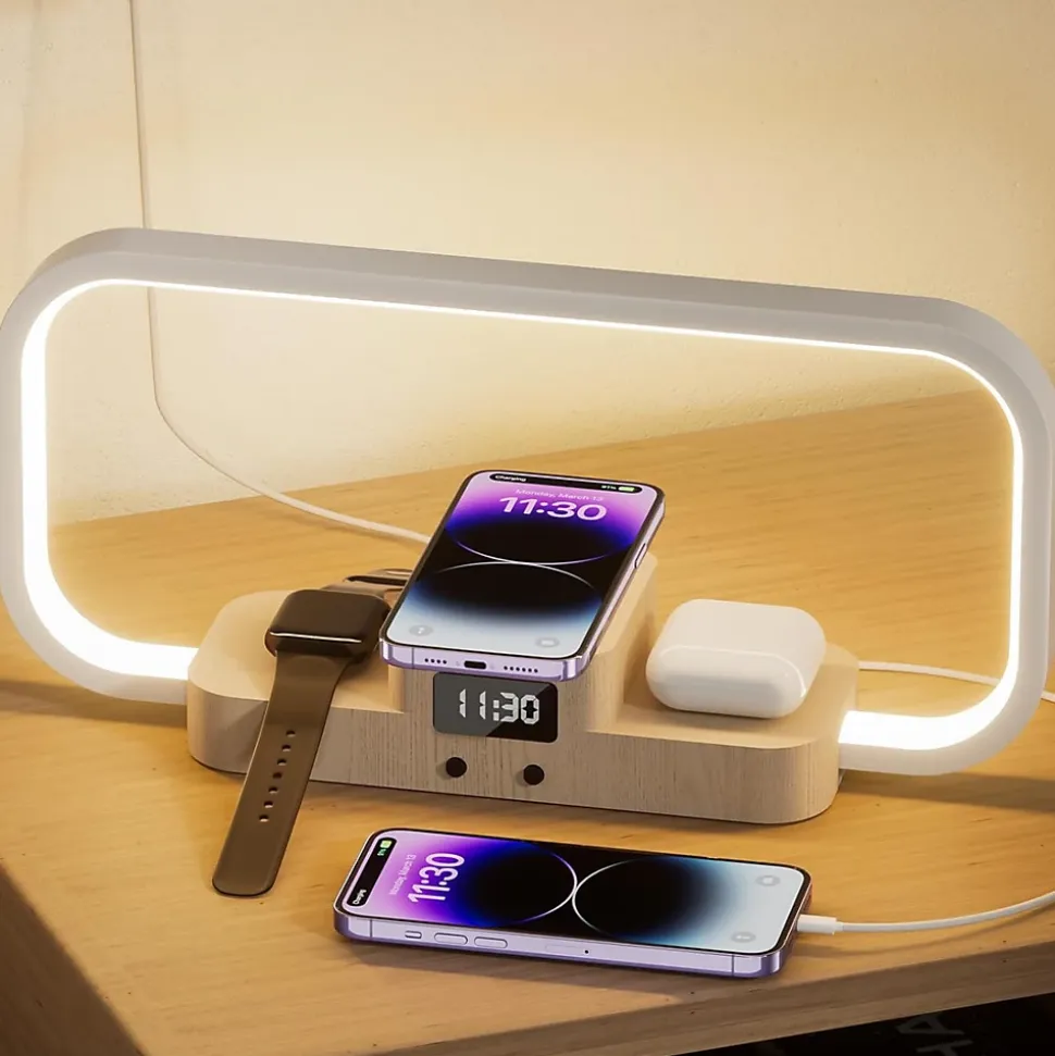 Lampe de Bureau à Commande Tactile】 Le design minimaliste et élégant de la lampe de bureau ajoute une sensation de confort dans votre maison. Équipé de perles LED professionnelles et de puces haute sensibilité, la luminosité peut être ajustée en continu en touchant doucement. Parfait pour décorer n’importe où dans votre maison, une lampe de table USB idéale pour le salon, la chambre, le bureau, la chambre des enfants, etc【Lampe de Chevet avec Chargeur sans Fil 3 en 1】Dites adieu à votre table de chevet en désordre causée par des cordons encombrés, alimentez efficacement vos appareils compatibles. Notre lampe chargeur induction offre une charge sans fil rapide jusqu’à 10 W, compatible avec iPhone 14/14 Plus/14 Pro/ 14 Pro Max/13/13 Pro/13 Pro Max/13 mini/12/12 Pro Max/12 mini/11/ 11 Pro Max et autres téléphones prenant en charge la fonction de charge sans fil ; Apple Watch 7/6/5/4/3/2/SE, Airpods Pro/3/2【5 Couleur d’Éclairage & Gradation Progressive】La lampe de chevet équipée de 5 modes de couleur pour des options d’éclairage polyvalentes, vous pouvez choisir le mode confortable pour l’atmosphère dont vous avez besoin lorsque vous travaillez ou vous reposez. Notre lampe de bureau à commande tactile fournit une lumière plus uniforme et délicate, qui protège vos yeux, crée une ambiance chaleureuse pour vous et votre famille【Affichage de l’Horloge & Port de Charge USB Supplémentaire】La lampe de chevet avec affichage de l’horloge peut être placée sur votre chevet ou votre bureau, l’écran LCD peut afficher l’heure clairement. Et vous pouvez régler la luminosité de l’horloge pour vous sentir à l’aise. Avec le port de charge USB arrière, vous pouvez charger vos tablettes, Kindle, diffuseur, haut-parleur ou autres appareils électroniques, que la lampe soit allumée ou éteinte