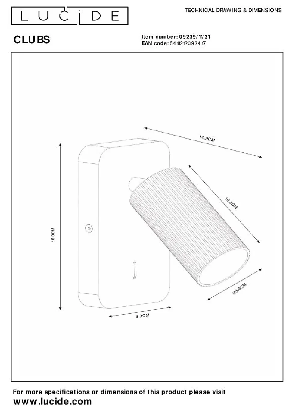 Clubs allie à la perfection rétro et modernité. Le design épuré du spot en aluminium de haute qualité va de pair avec le design moleté de l’abat-jour cylindrique. Avec ses dimensions de 9 x 14,9 x 16 centimètres, cette applique murale s’adapte à presque toutes les pièces de votre maison. L’abat-jour peut être facilement tourné et incliné, et peut accueillir une source lumineuse LED. Pour un maximum de confort, il suffit d’allumer et d’éteindre Clubs à l’aide de l’interrupteur situé sur le luminaire.Caractéristiques uniques:• Utilisable avec une source lumineuse LED• Cette lampe est rotative et inclinable• Avec un interrupteur On/off sur la lampe• Fabriqué en aluminiumPrincipales caractéristiques du produit:• Consommation énergétique: 1x40W / 230V / Sans intensité variable (Ampoule non incluse)• Dimensions: Lon.9 x Larg.14,9 x Haut.16 cm• 2 Ans garantie sur le luminaire / source de lumière appropriée est EAN: 5411212490650Pourquoi choisir l’éclairage Lucide?Lucide incarne un design innovant, un savoir-faire artisanal et une fiabilité exemplaire. En tant qu’entreprise familiale belge avec plus de trois décennies d’expertise, nous concevons des éclairages de haute qualité qui enrichissent et transforment chaque espace, tant intérieur qu’extérieur. Notre collection polyvalente comprend des luminaires durables et des sources lumineuses économes en énergie, soigneusement conçus par nos propres experts et fabriqués selon les normes CE les plus strictes. Grâce à notre large gamme, nous vous proposons toujours une solution d’éclairage adaptée, quel que soit le style ou l’espace. Ainsi, nous illuminons non seulement votre espace de vie mais aussi votre processus de choix dans la recherche d’un éclairage de qualité et abordable. Chez Lucide, nous combinons innovation et savoir-faire pour un éclairage qui ajoute non seulement de l’ambiance, mais transforme chaque maison en foyer.